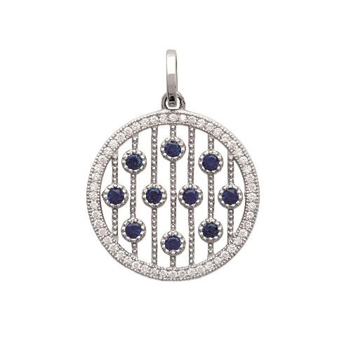 Pendentif en argent 925/000 rhodié, oxyde de zirconium et pierres synthétiques.