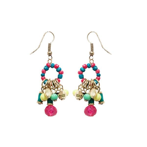 Boucles d'oreilles fantaisie en métal doré et verre.