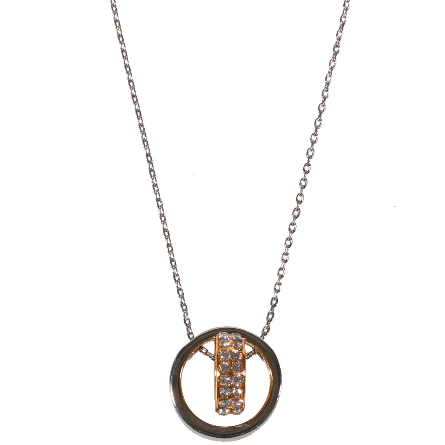 Collier en acier argenté, acier doré et verre.