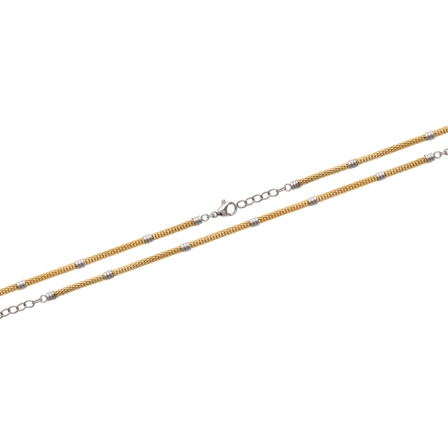 Description Bracelet en acier argenté et acier doré. Longueur 18+1.5 cm [Guide des tailles] Matière(s) Acier . L'acier utilisé dans la bijouterie existe sous plusieurs qualités. Nous utilisons principalement la qualité 316L, qualité qui est utilisée en chirurgie. Cet acier est donc inoxydable et reste très résistant. Fermoir Mousqueton Couleur(s) dominante(s) Doré Public Adulte . Genre Femme . Saison Indémodable . Cliquez sur une matière, un thème, une couleur ou une collection pour voir tous les articles associés.