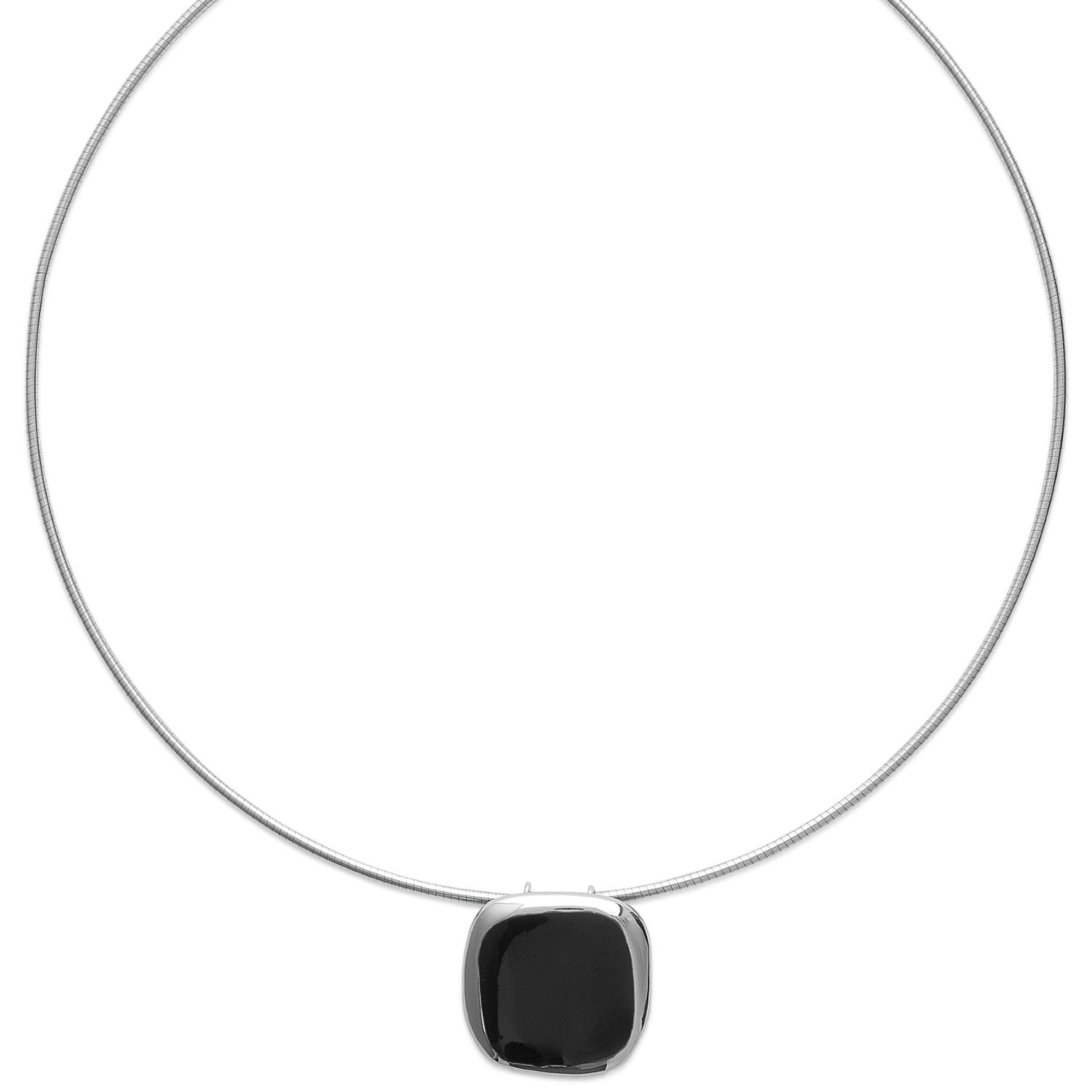 Collier tour de cou semi-rigide en acier et imitation onyx. Carré Ras de cou  Adulte Femme Indémodable Collier tour de cou semi-rigide en acier et imitation onyx. Carré Ras de cou  Adulte Femme Indémodable