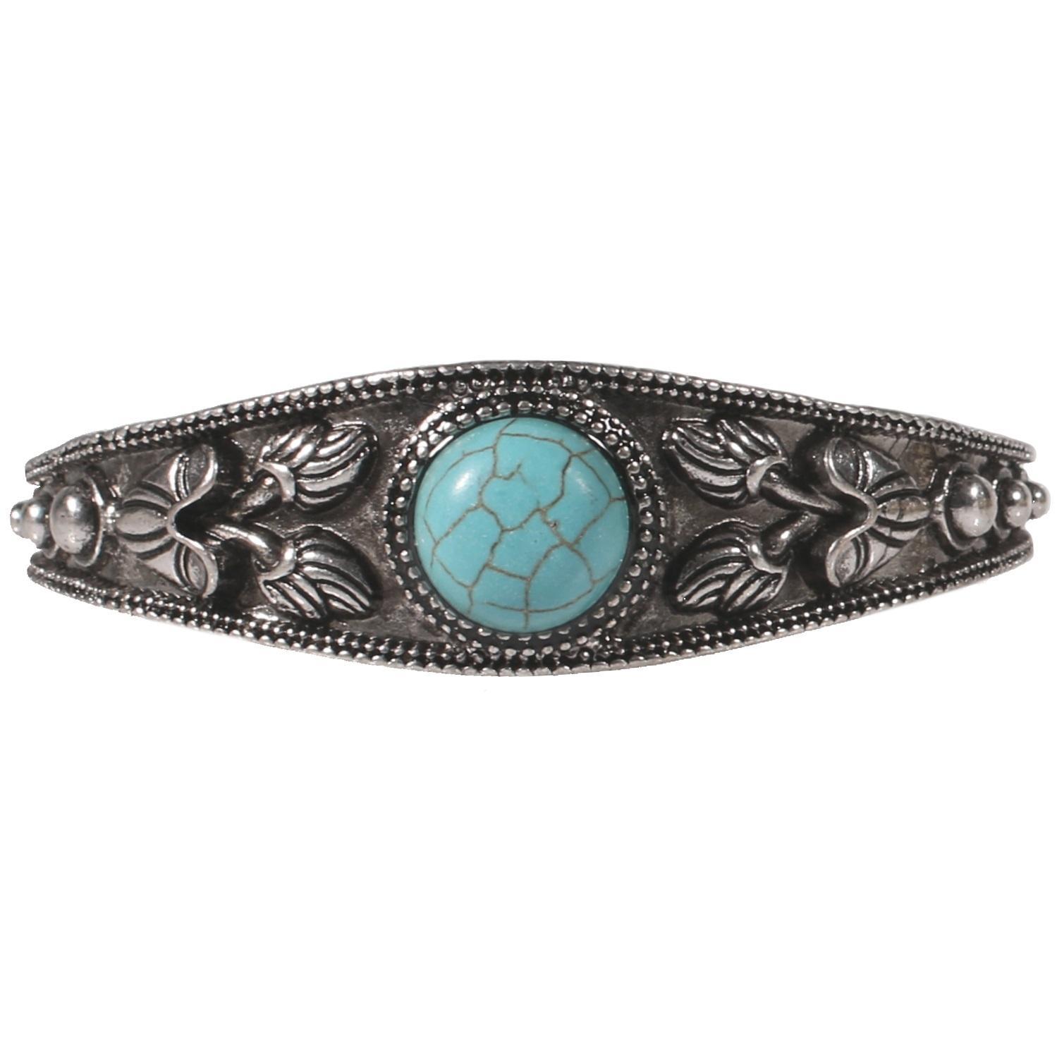 Bracelet jonc fantaisie rigide en métal argenté vieilli et résine.