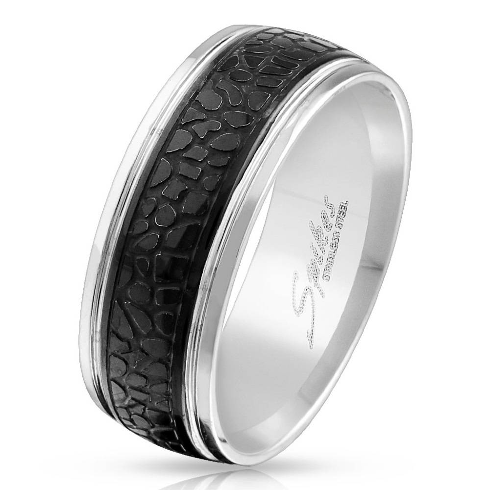 Bague en acier chirurgical 316L et cuir imitation serpent.