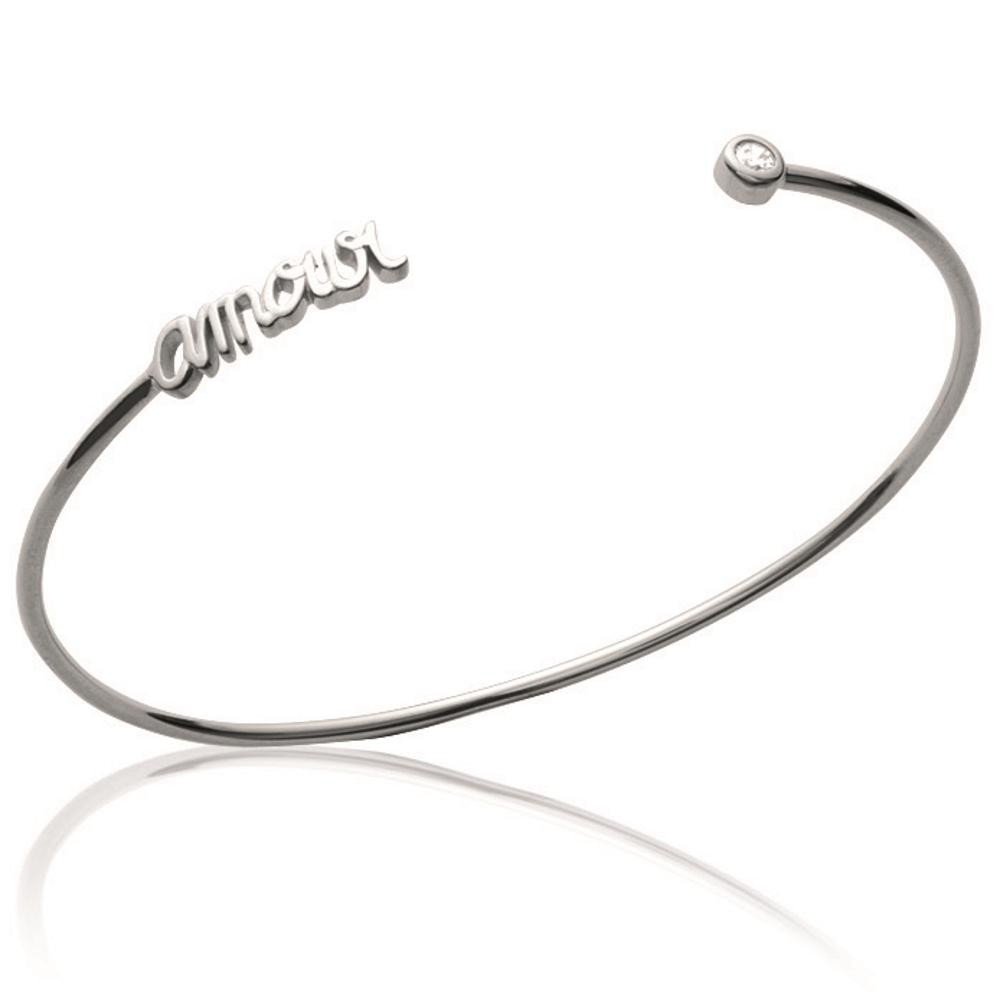 Bracelet jonc rigide en argent 925/000 rhodié et oxyde de zirconium.