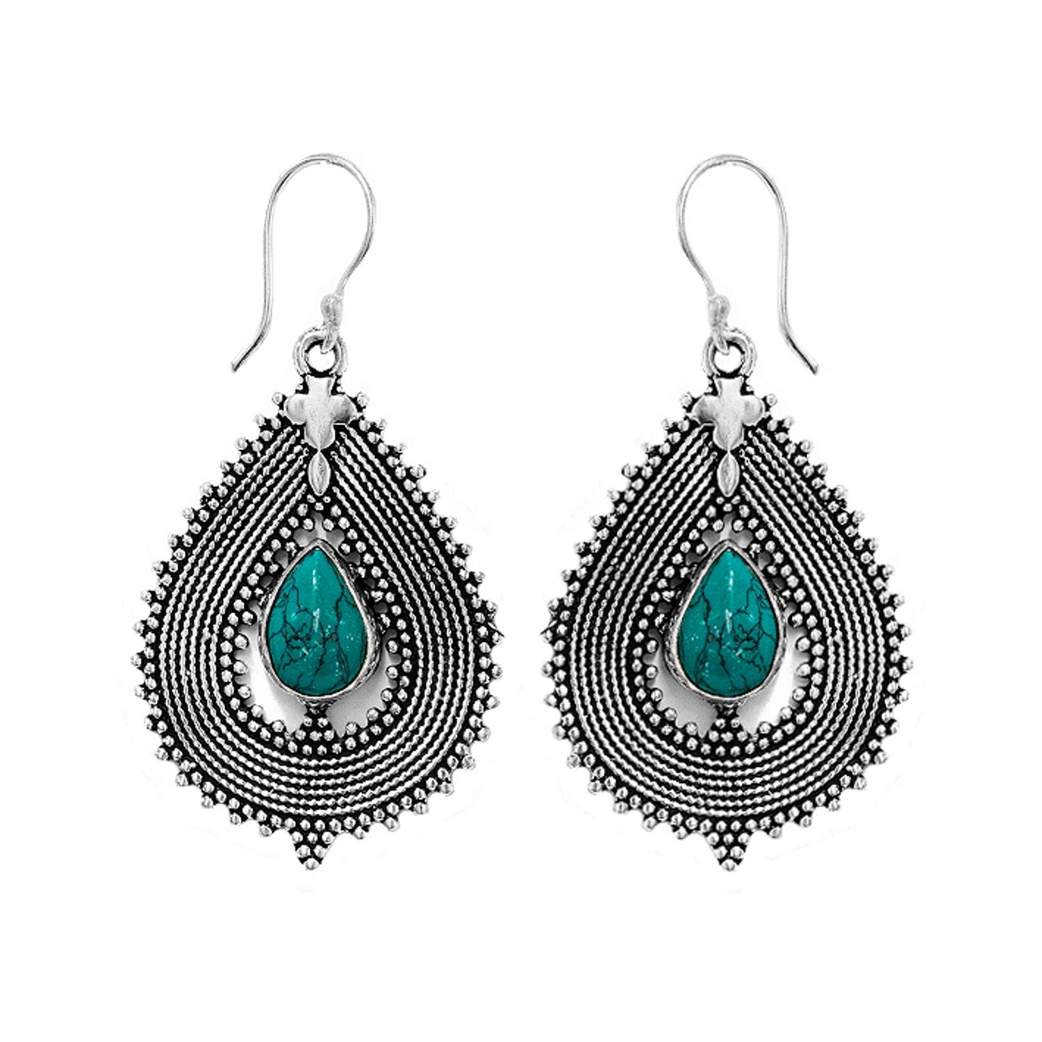 Boucles d'oreilles fantaisie en métal argenté vieilli et rocaille.