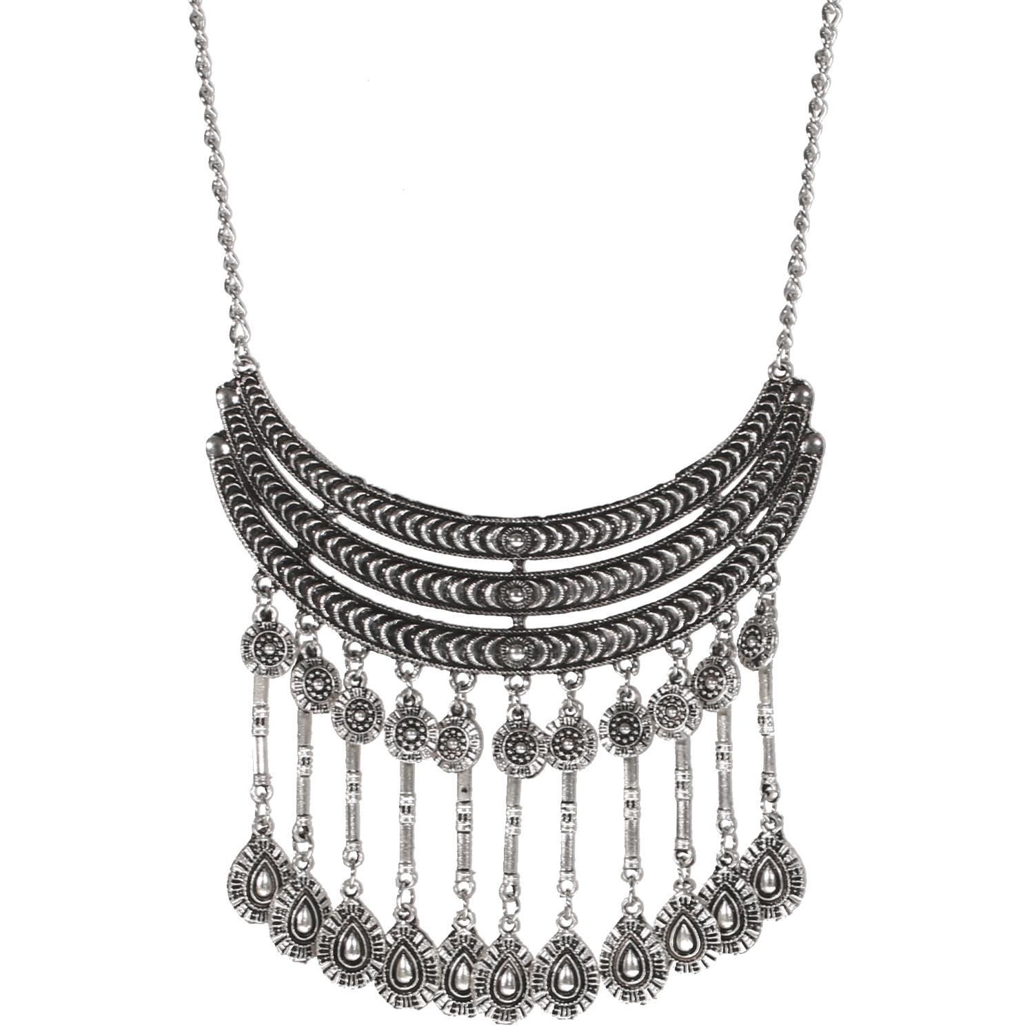 Description Collier fantaisie en métal argenté vieilli. Cliquez sur une matière, un thème, une couleur ou une collection pour voir tous les articles associés.