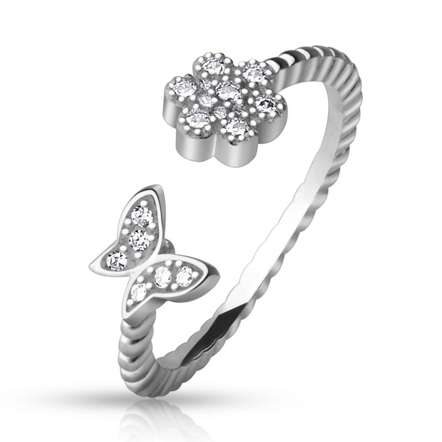 Bague de pied en argent 925/000 et oxyde de zirconium. Etoile Papillon  Adolescent Adulte Animaux Femme Fille Indémodable Nature