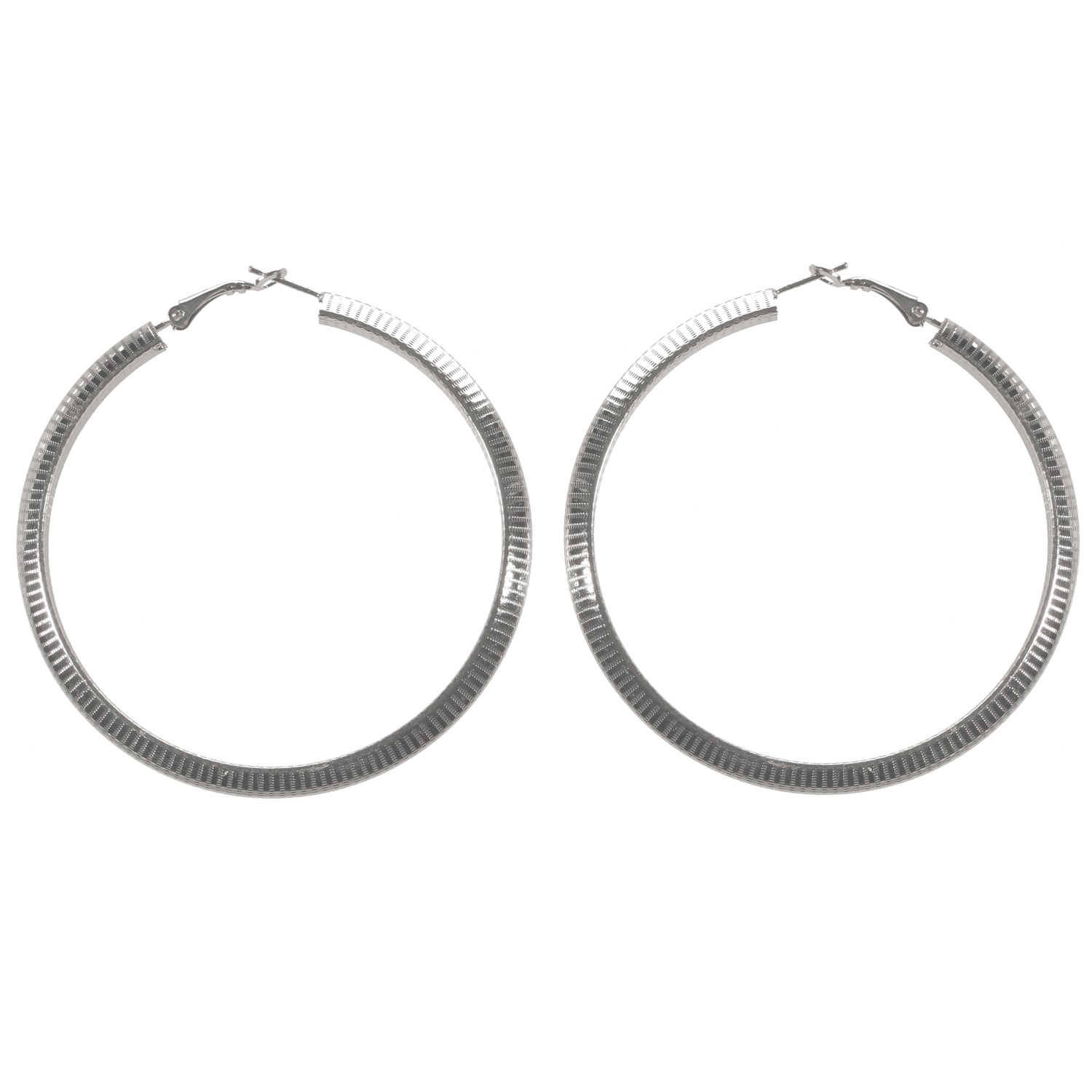 Boucles d'oreilles créoles fantaisie en métal argenté.