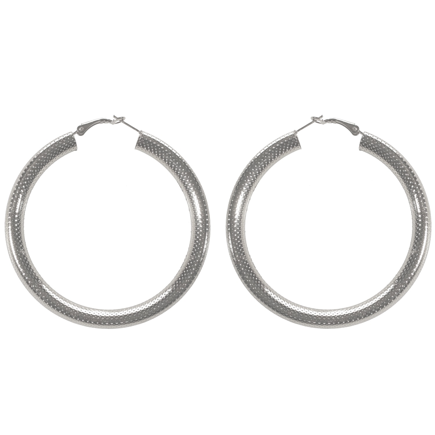 Boucles d'oreilles créoles fantaisie en métal argenté.