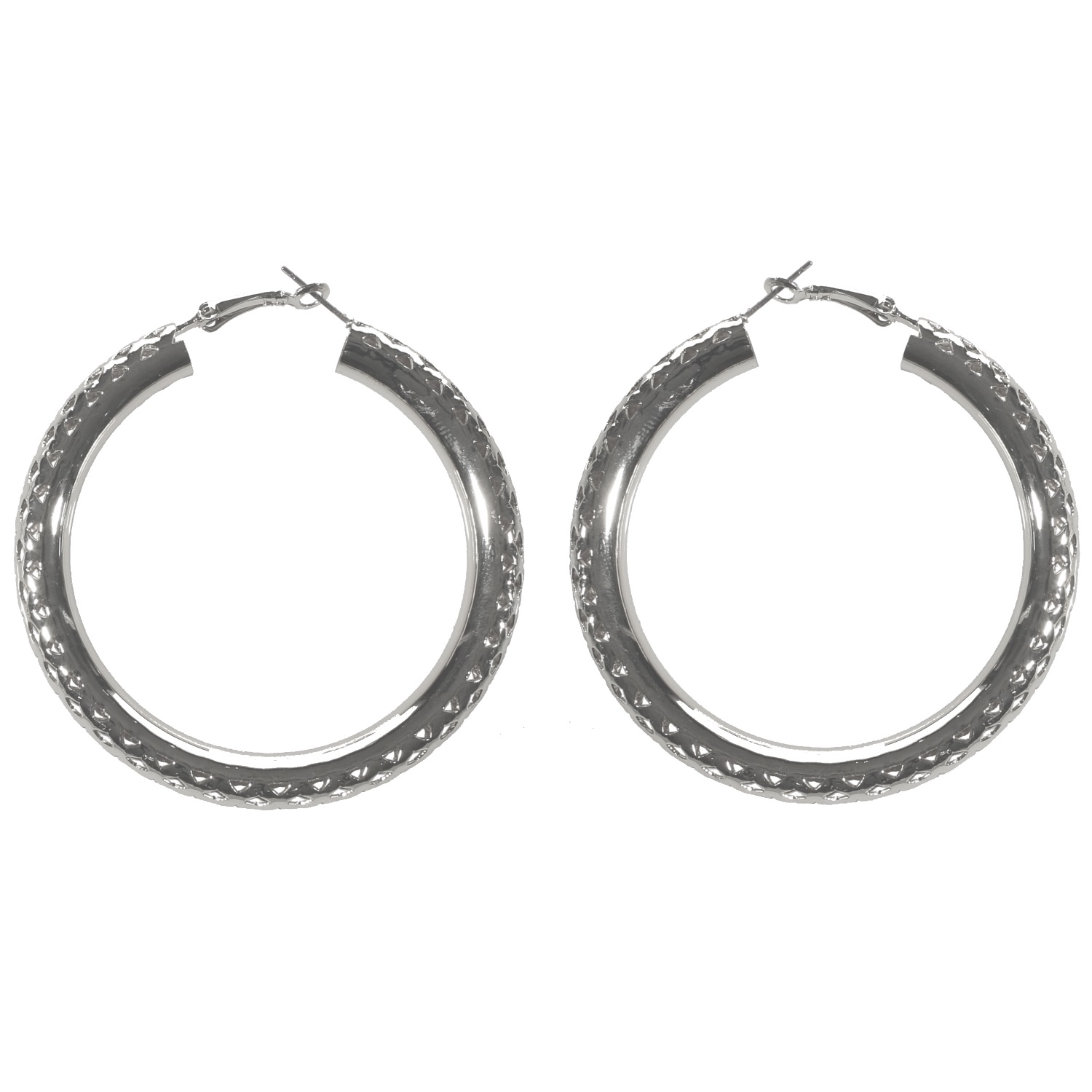 Boucles d'oreilles créoles fantaisie en métal argenté.