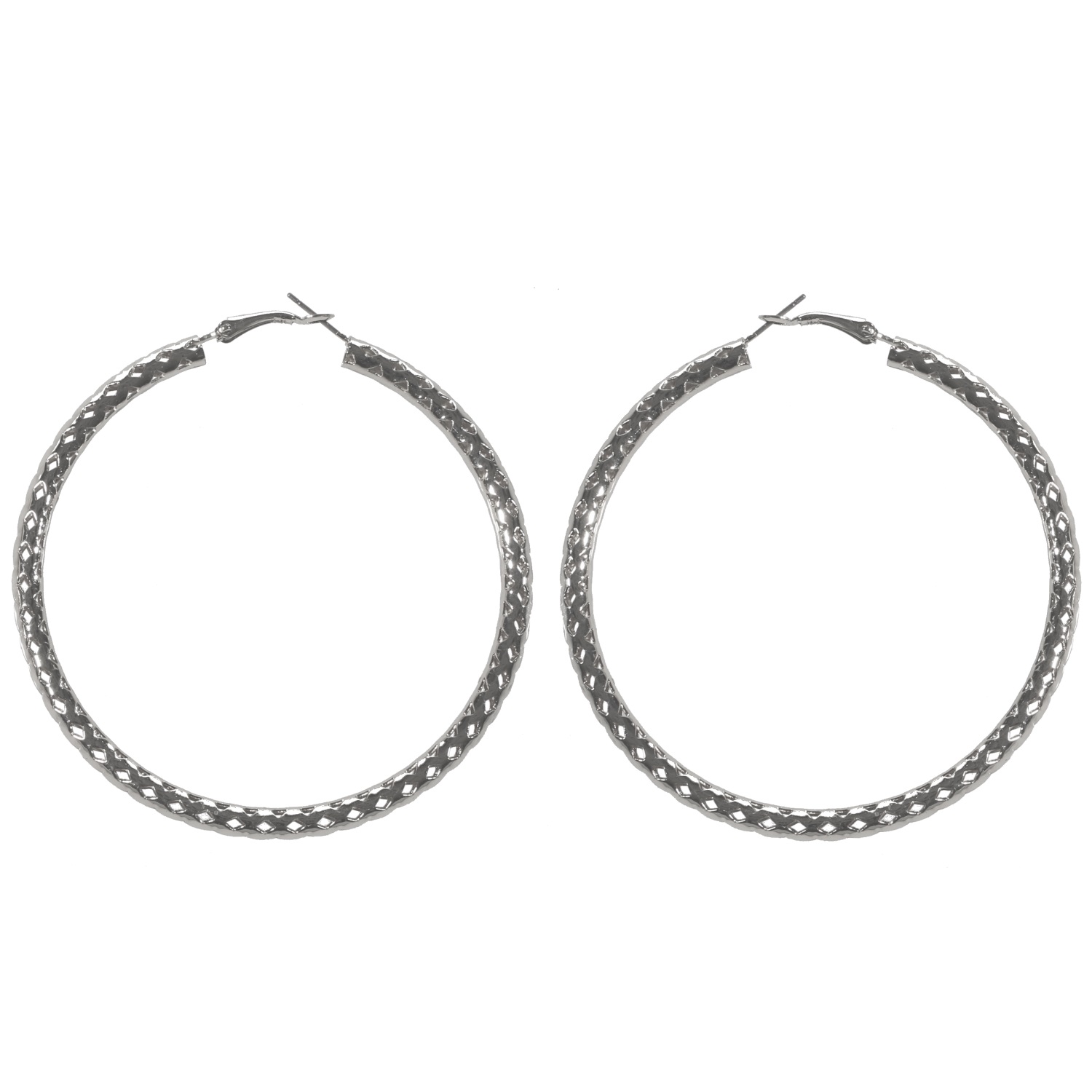 Boucles d'oreilles créoles fantaisie en métal argenté.