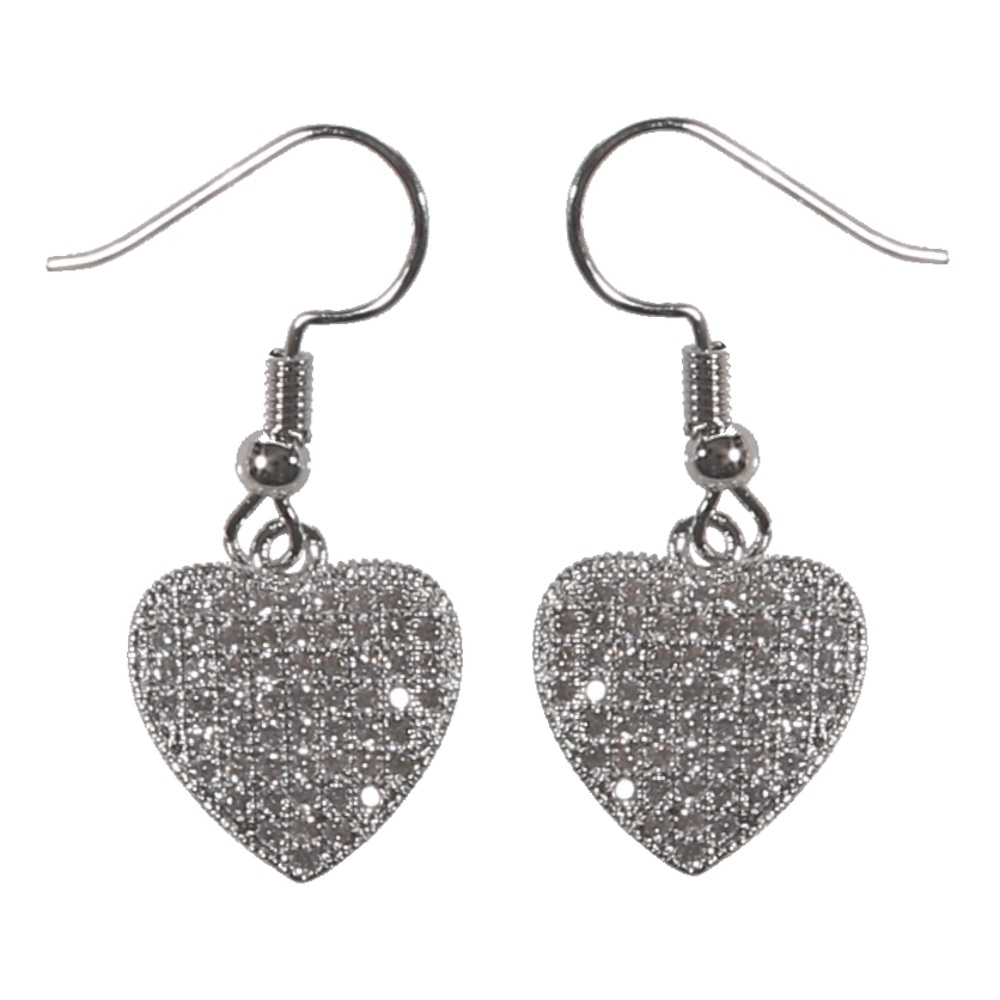 Boucles d'oreilles fantaisie Cœur en métal argenté et oxyde de zirconium.