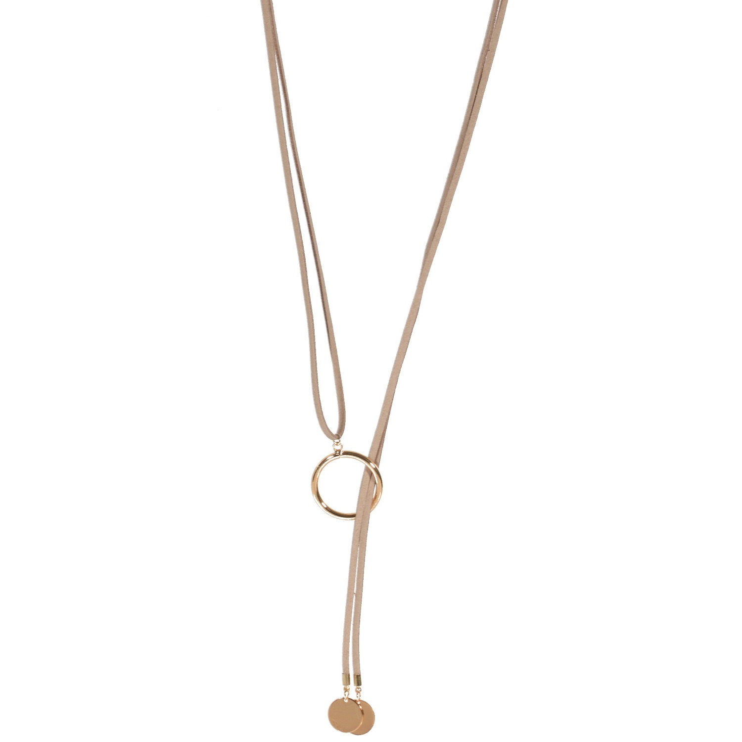 Collier sautoir en métal doré et suédine.