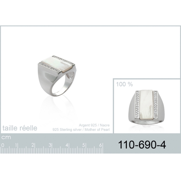 Bague en argent 925/000 rhodié, oxyde de zirconium et nacre.