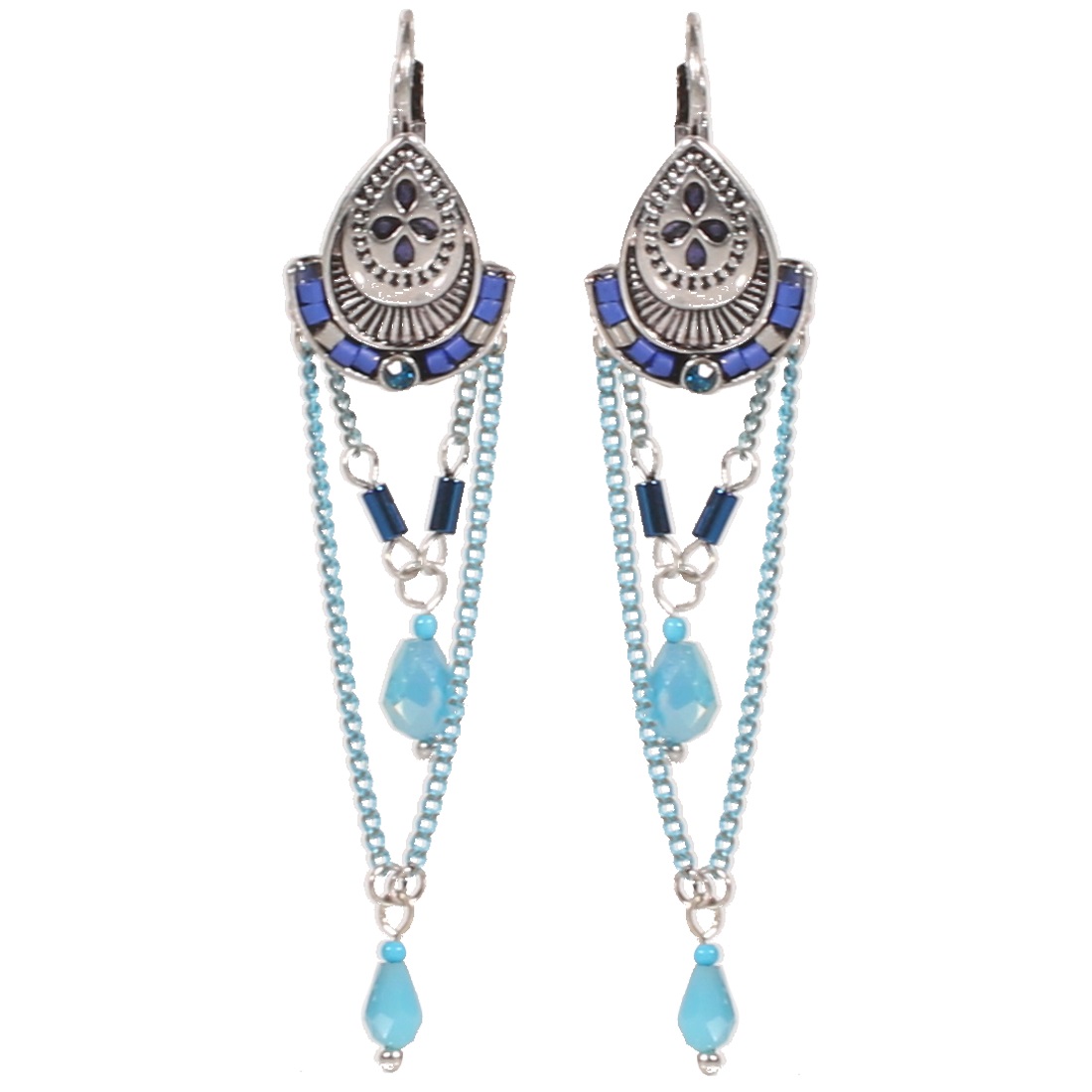 Boucles d'oreilles fantaisie en métal argenté, métal peint et rocaille.