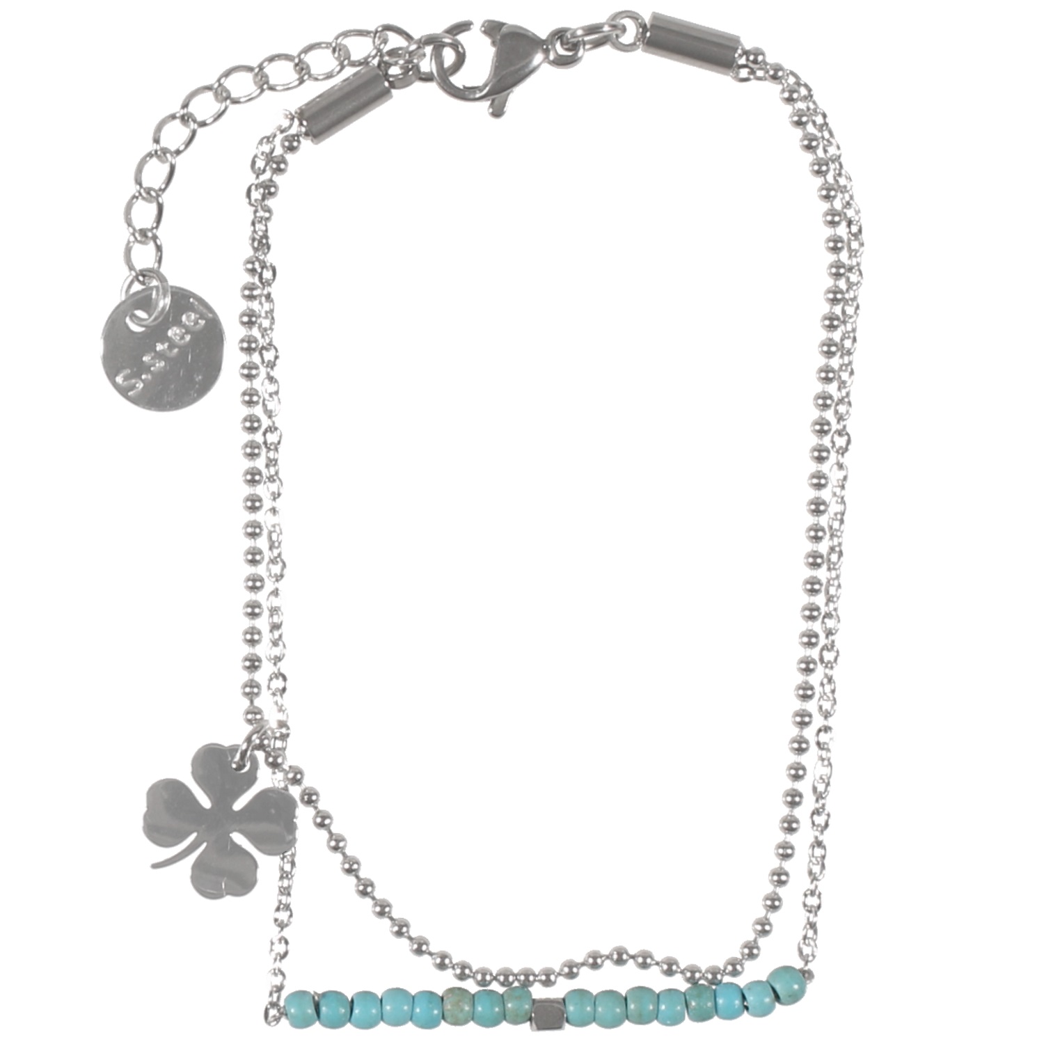 Description Bracelet multirangs en acier argenté et pierres d'imitation turquoise. 2 rangs. Cliquez sur une matière, un thème, une couleur ou une collection pour voir tous les articles associés.
