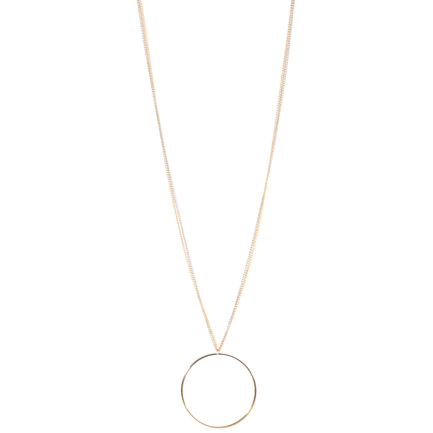 Collier sautoir fantaisie multi rangs avec 2 cercles en pendentif en métal argenté et en métal doré.