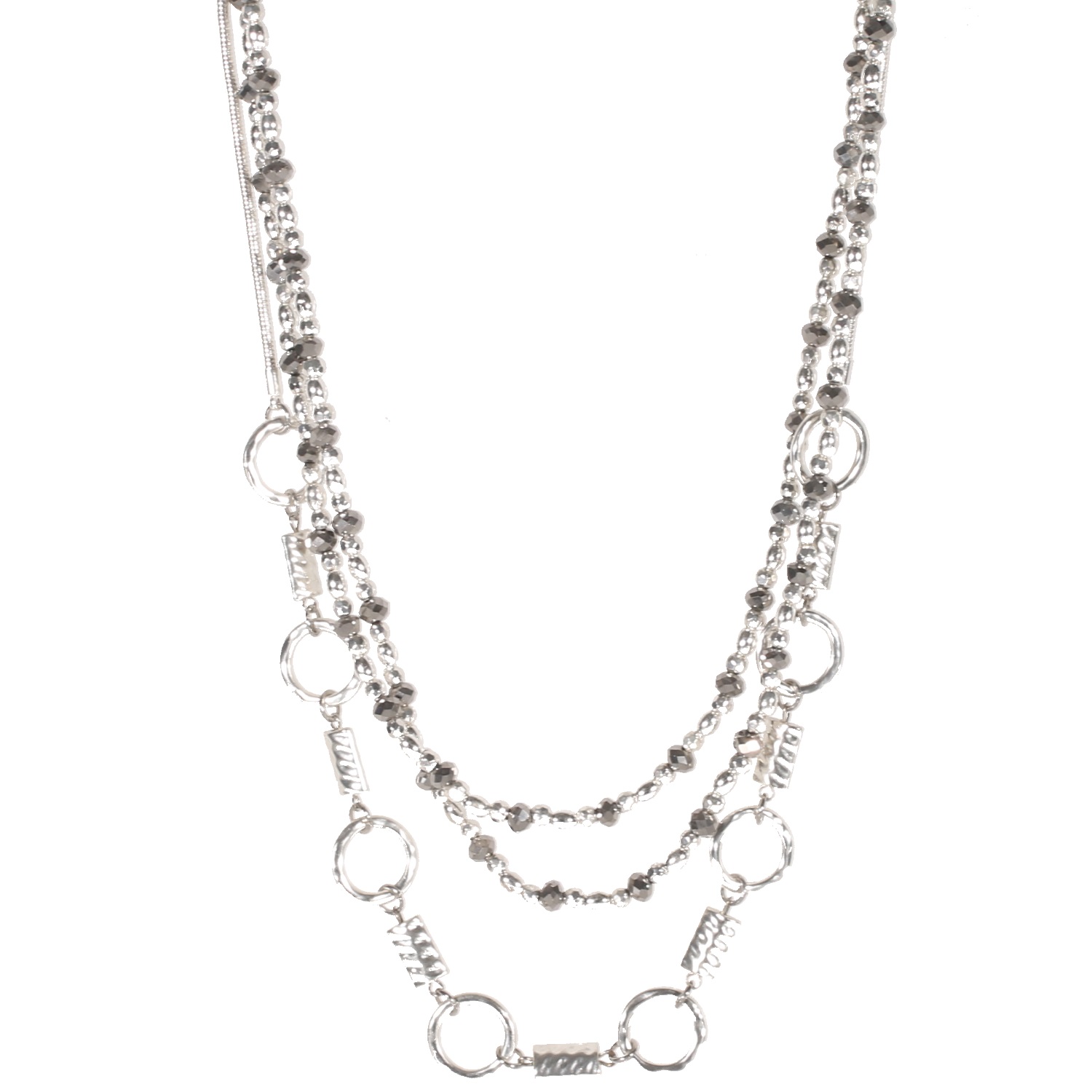 Collier fantaisie multi rangs Fashion métal en métal argenté et cristaux synthétiques.