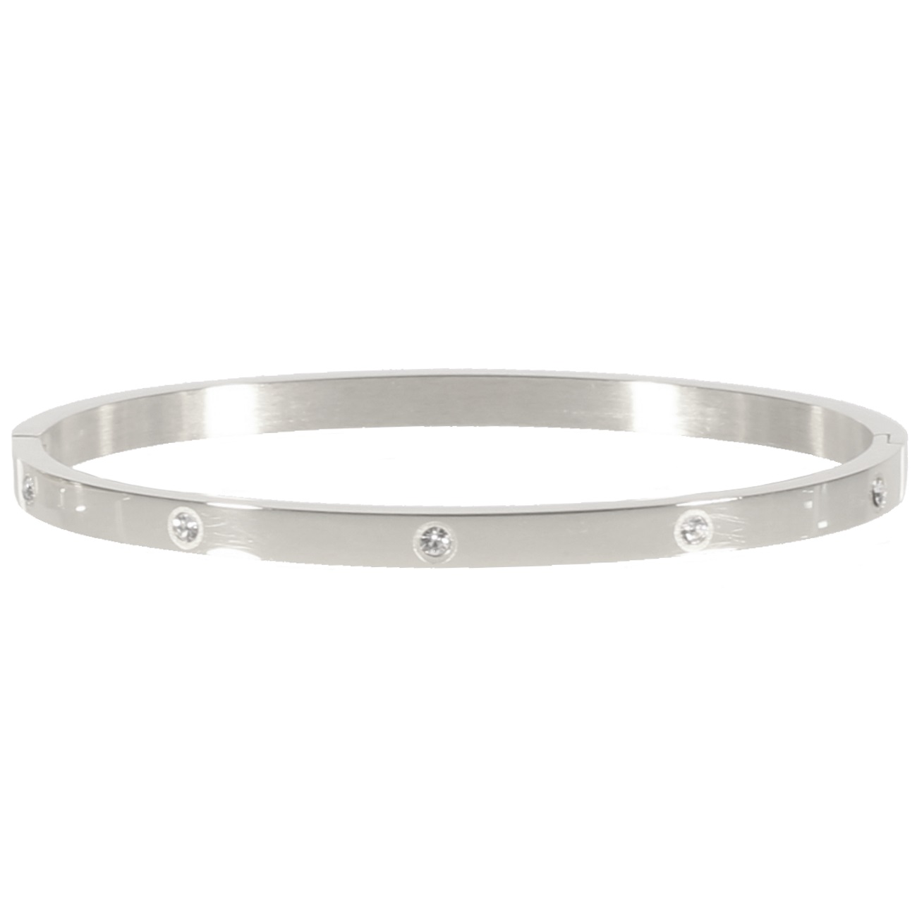 Description Bracelet jonc rigide en acier argenté et cristaux synthétiques. Largeur 4 mm Diamètre 58 mm [Guide des tailles] Matière(s) Acier , Verre . L'acier utilisé dans la bijouterie existe sous plusieurs qualités. Nous utilisons principalement la qualité 316L, qualité qui est utilisée en chirurgie. Cet acier est donc inoxydable et reste très résistant. Fermoir Charnière Couleur(s) dominante(s) Argenté Public Adolescent , Adulte . Genre Femme , Fille . Saison Indémodable . Cliquez sur une matière, un thème, une couleur ou une collection pour voir tous les articles associés.