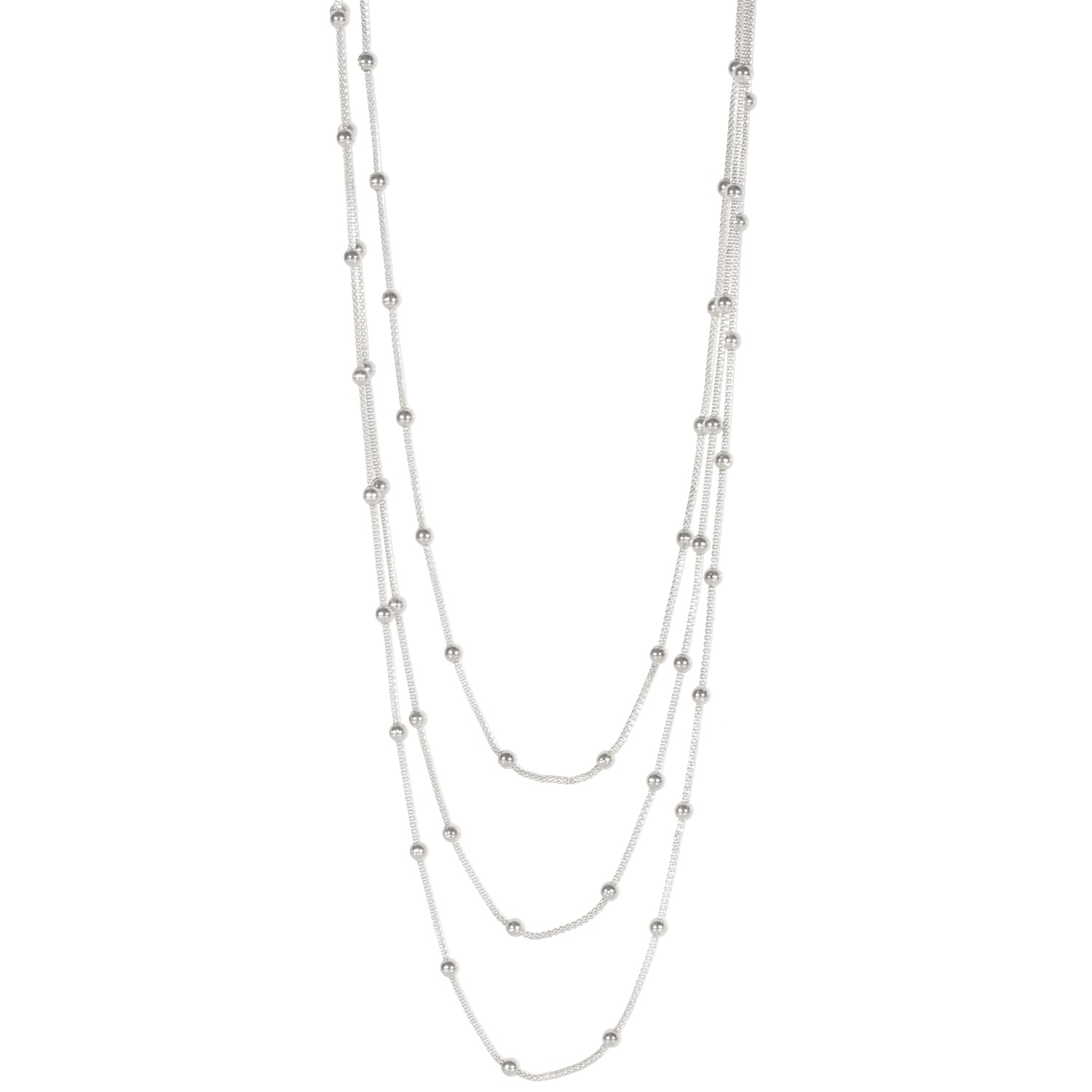 Collier sautoir fantaisie multi rangs en métal argenté.