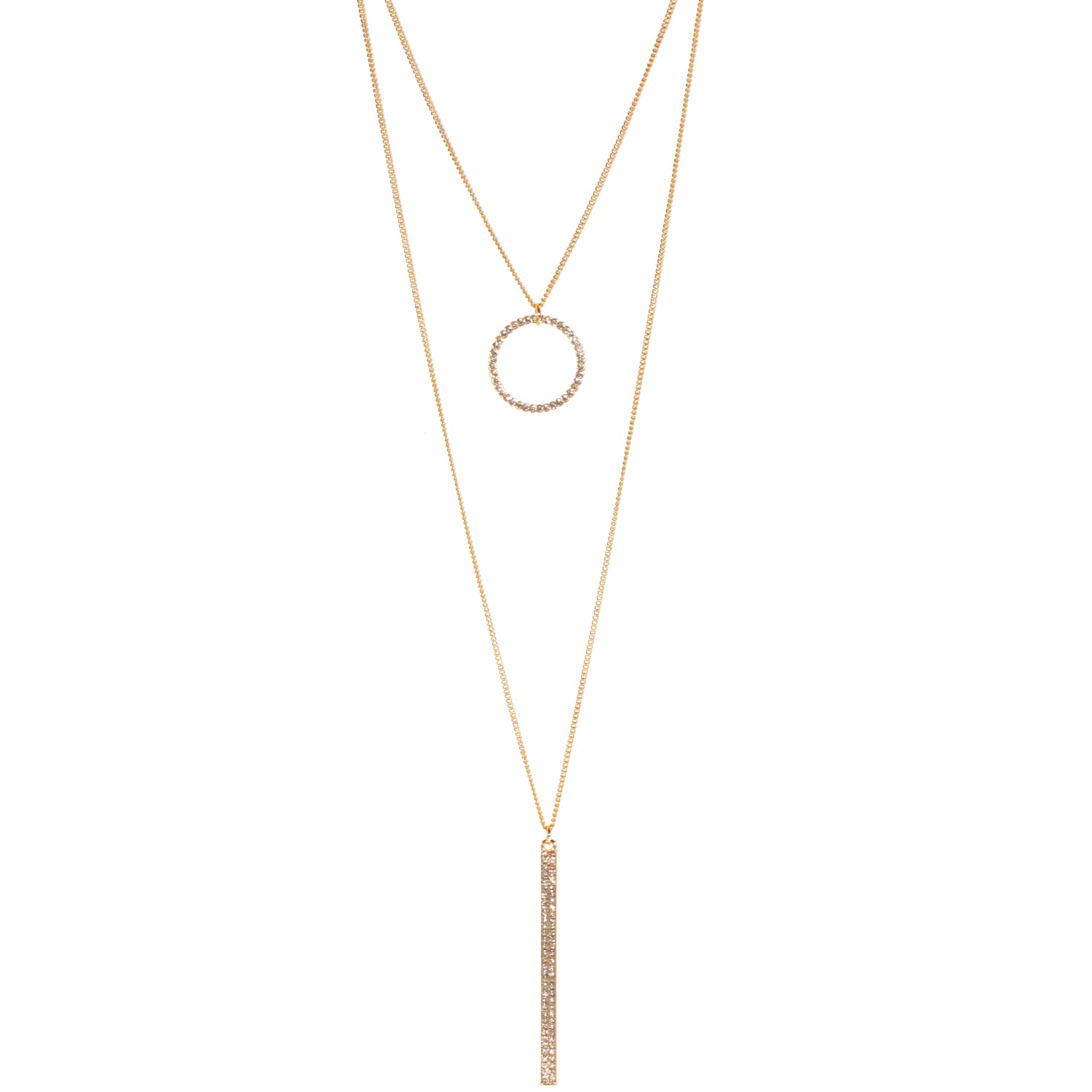 Description Collier sautoir fantaisie multi rangs en métal doré et cercle et pendant tige avec strass de couleur cristal. 2 rangs. Cliquez sur une matière, un thème, une couleur ou une collection pour voir tous les articles associés.