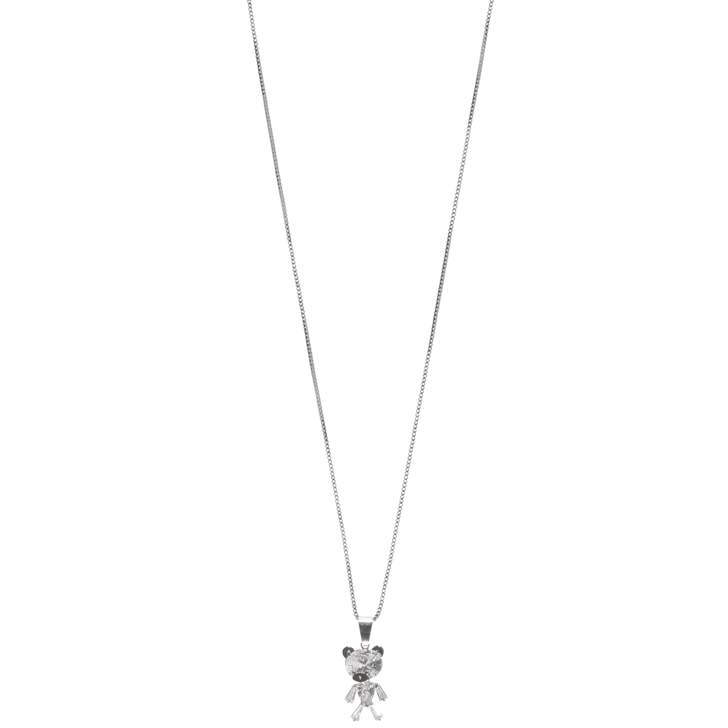 Collier fantaisie avec pendentif nounours en métal argenté et oxydes de zirconium.