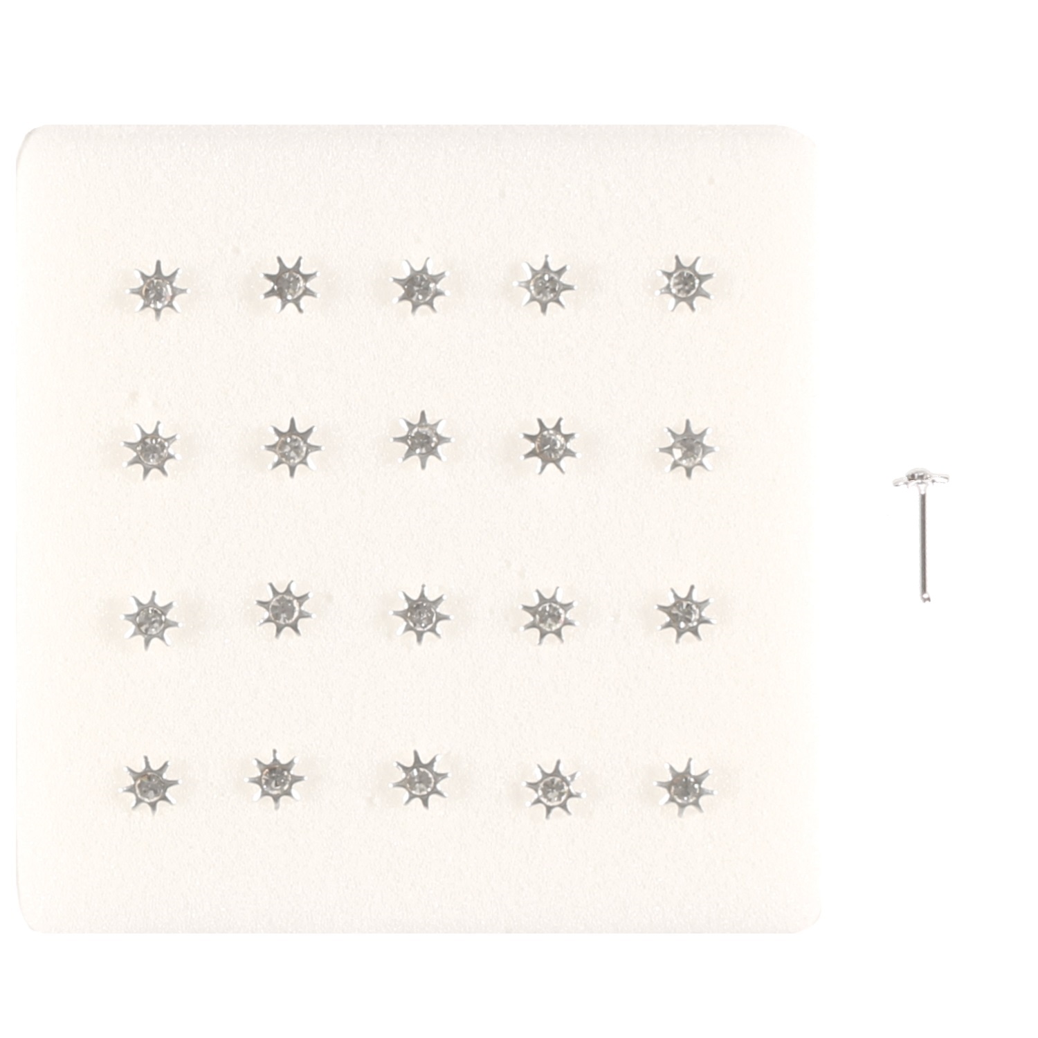 Description Tige de nez soleil en métal argenté et strass. Vendu à l'unité. Cliquez sur une matière, un thème, une couleur ou une collection pour voir tous les articles associés.