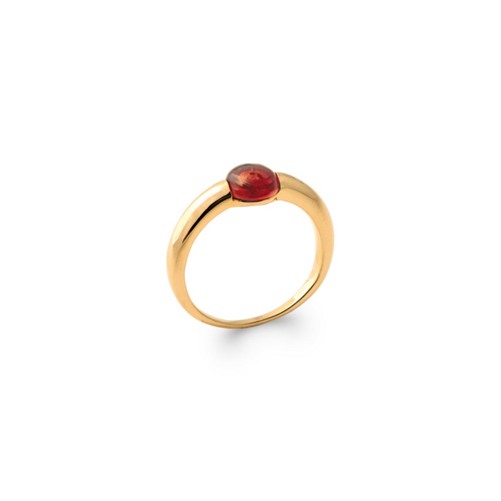 Bague en plaqué or 18 carats surmontée d'un véritable grenat.