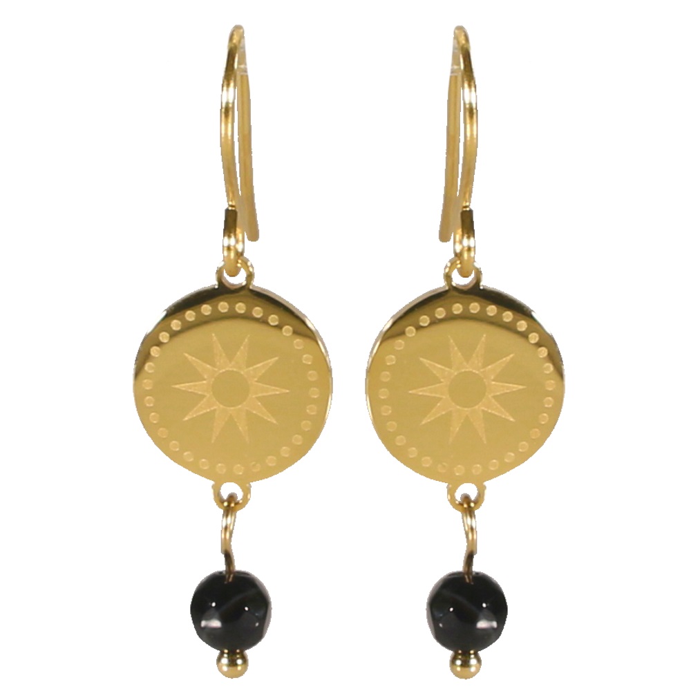 Description Boucles d'oreilles pendantes pastilles motif soleil en acier doré et perles de couleur. Largeur 10 mm Hauteur 30 mm Matière(s) Acier , Rocaille . L'acier utilisé dans la bijouterie existe sous plusieurs qualités. Nous utilisons principalement la qualité 316L, qualité qui est utilisée en chirurgie. Cet acier est donc inoxydable et reste très résistant. Fermoir Crochets Couleur(s) dominante(s) Doré , Noir Public Adolescent , Adulte . Genre Femme , Fille . Saison Indémodable . Thème(s) Nature . Cliquez sur une matière, un thème, une couleur ou une collection pour voir tous les articles associés.
