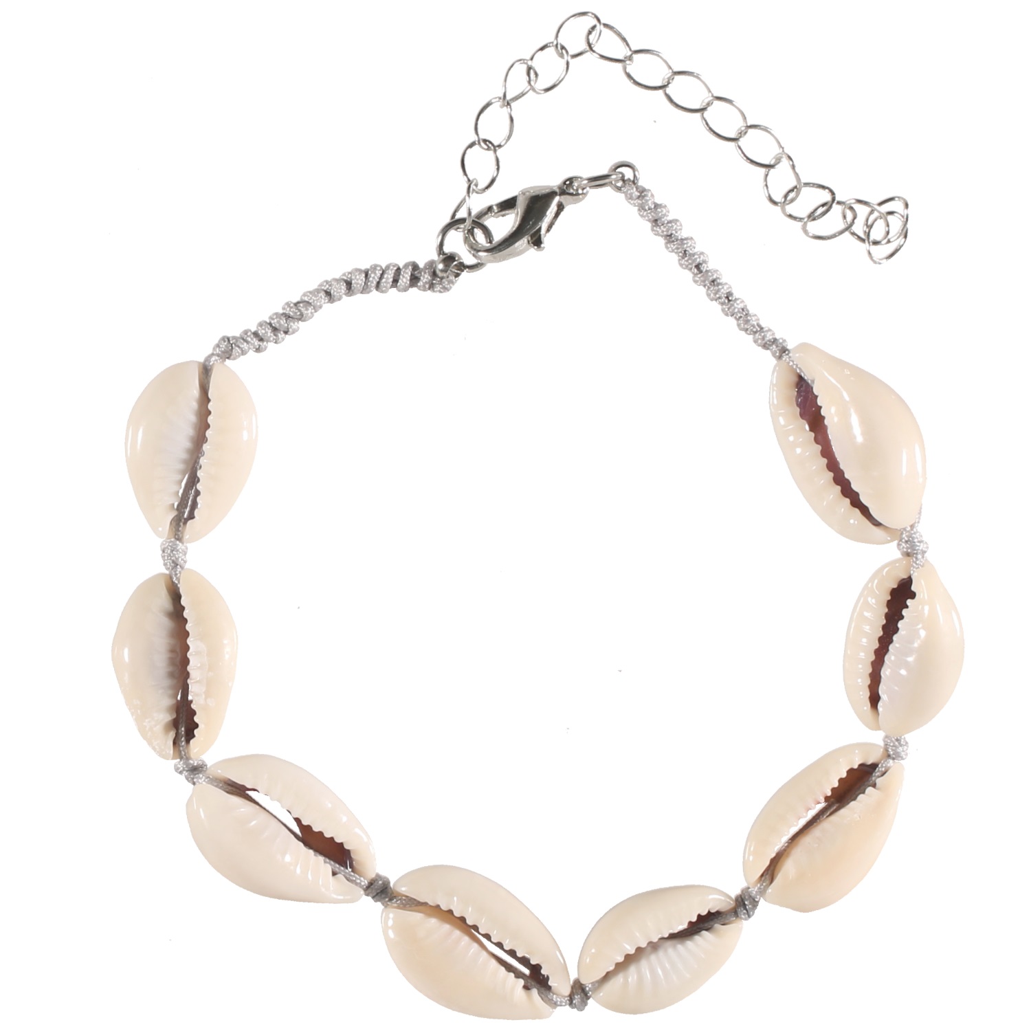 Description Bracelet fantaisie en métal argenté, cordon en textile et véritables coquillages cauris. Cliquez sur une matière, un thème, une couleur ou une collection pour voir tous les articles associés.