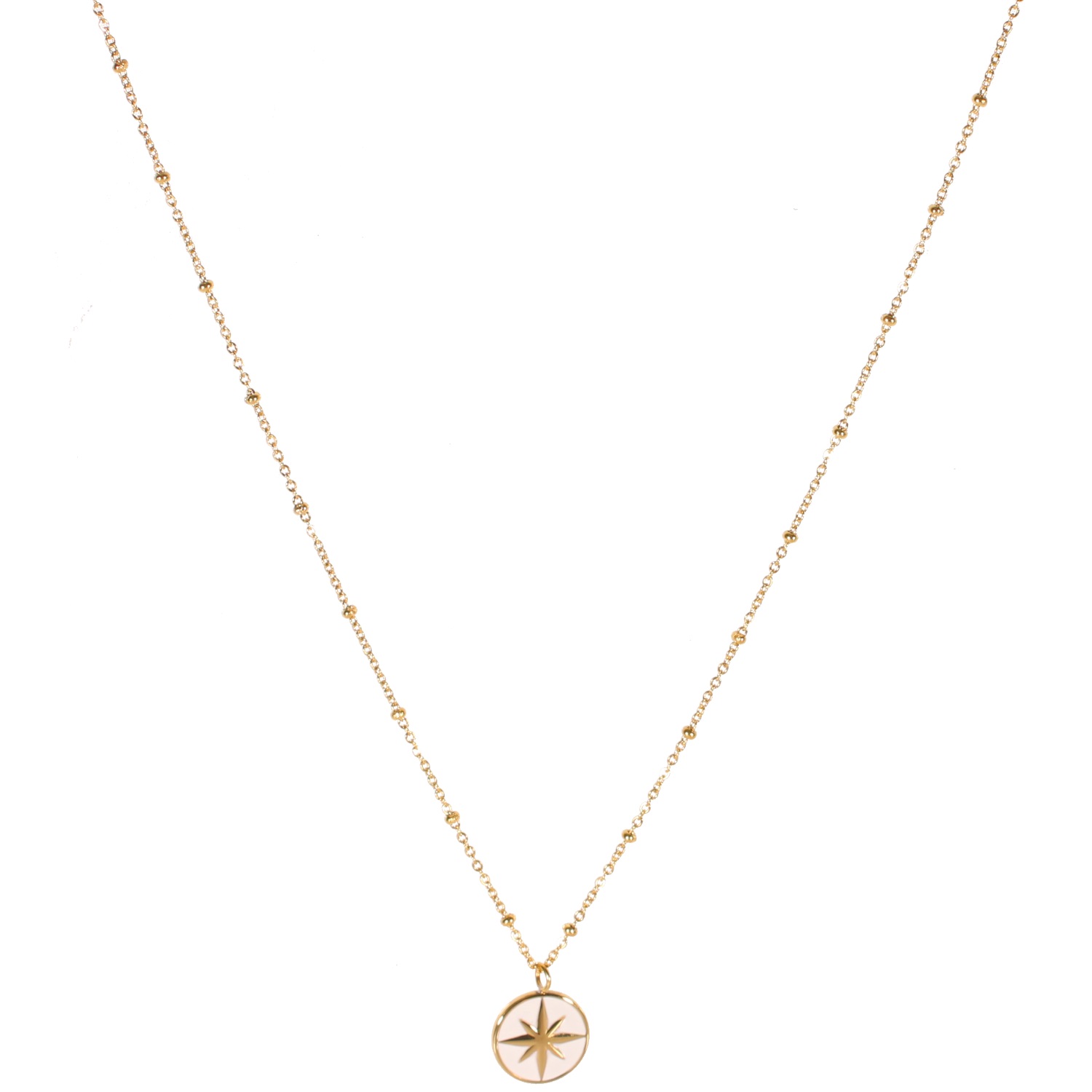 Description Collier avec pendentif motif étoile en acier doré et émail de couleur blanche. Cliquez sur une matière, un thème, une couleur ou une collection pour voir tous les articles associés.