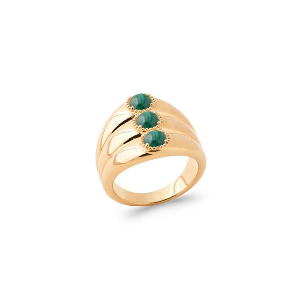 Bague en plaqué or et trois pierres de malachite.