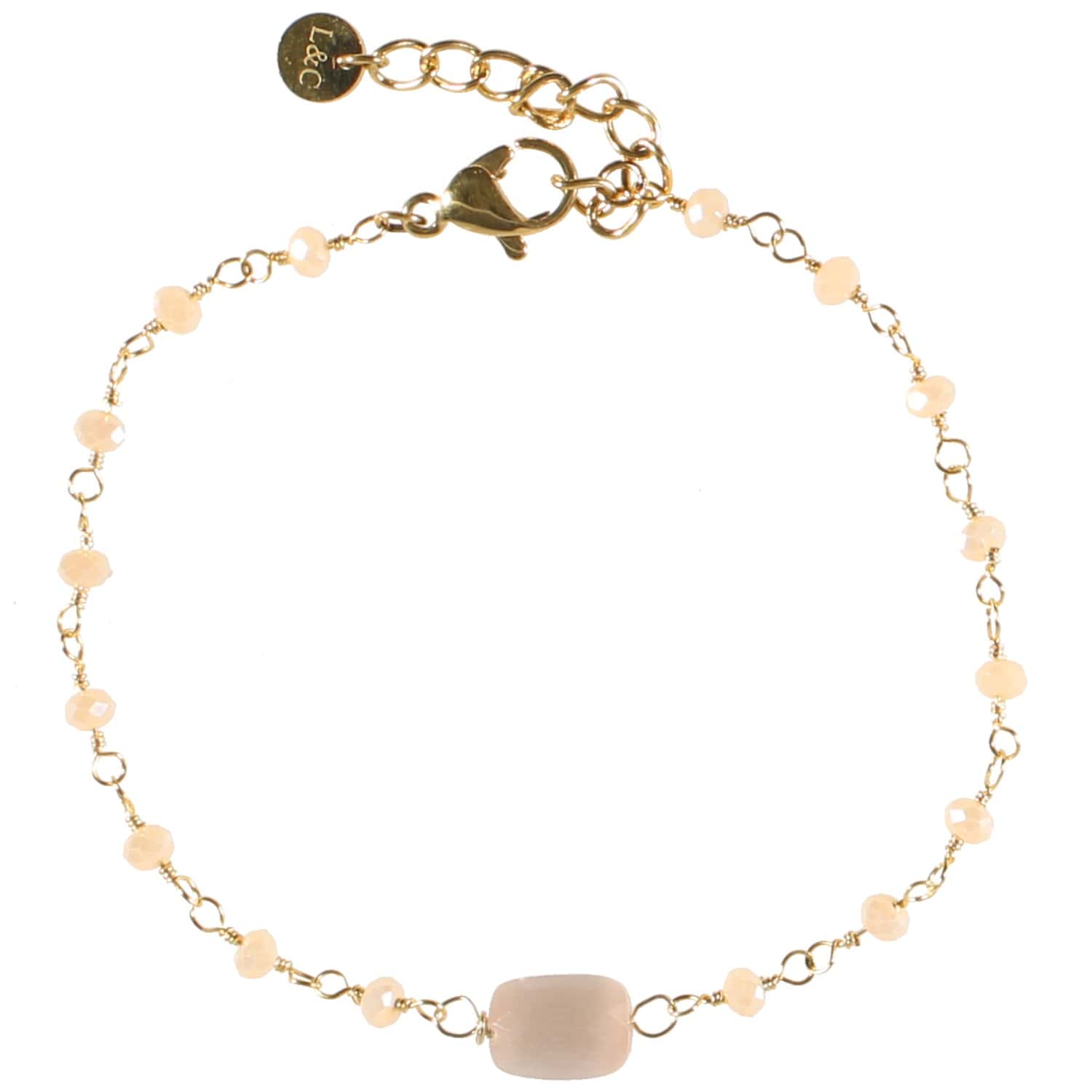 Bracelet en acier doré, perles de couleur et pierre de couleur.