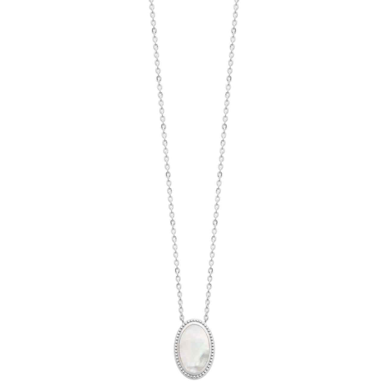 Collier en argent 925/000 rhodié et pendentif avec pierre ovale de nacre sertie clos.