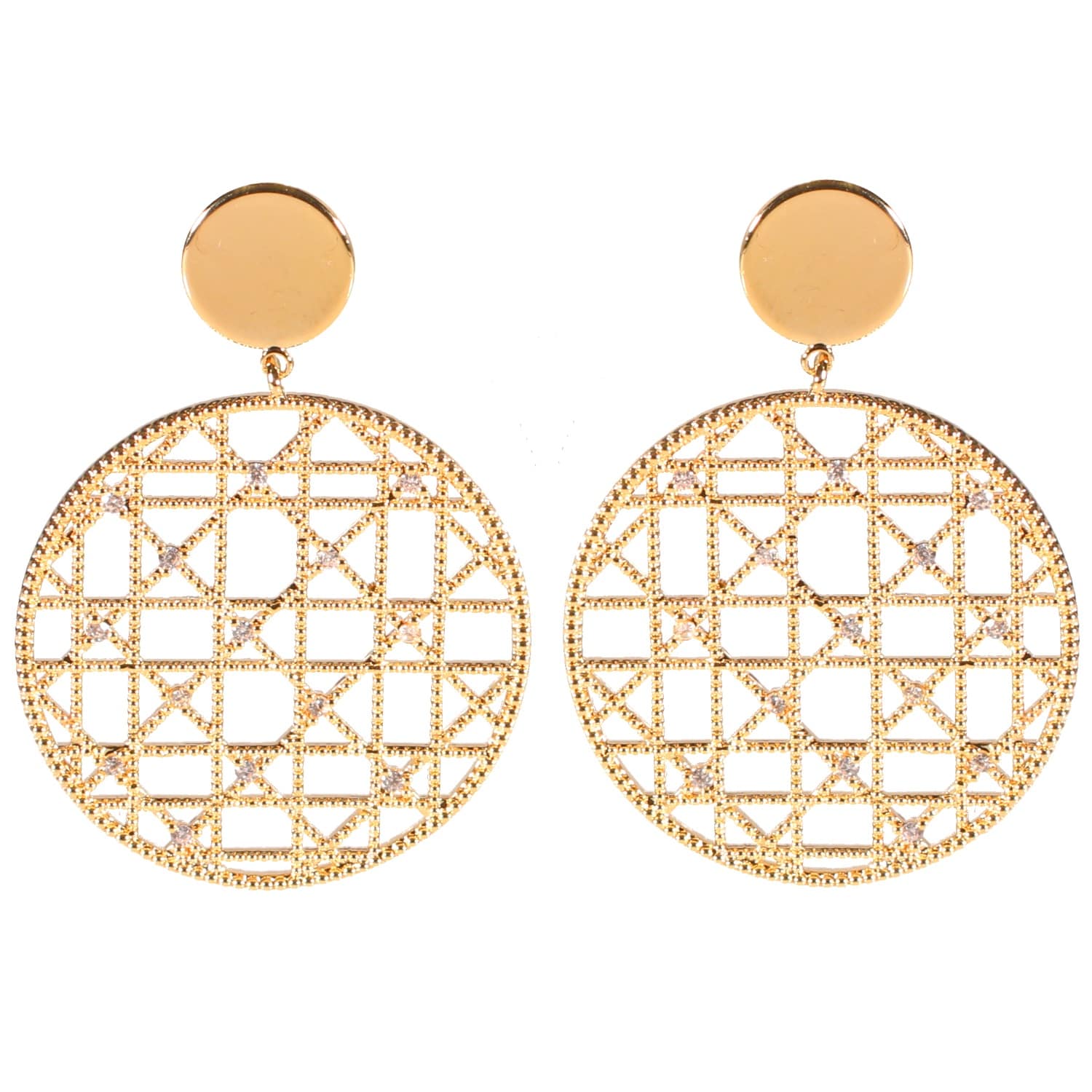Description Boucles d'oreilles fantaisie avec cercles en métal doré plaquage supérieur et strass en oxydes de zirconium. Cliquez sur une matière, un thème, une couleur ou une collection pour voir tous les articles associés.