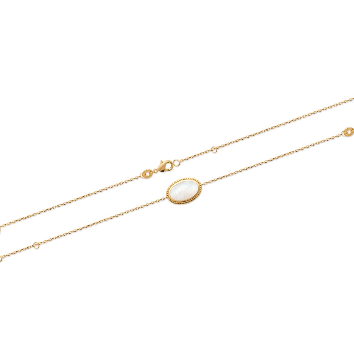 Description Bracelet en plaqué or 18 carats et pierre de nacre sertie clos de forme ovale. Fermoir mousqueton avec anneaux de rappel à 16 et 18 cm. Longueur 16/18 cm [Guide des tailles] Largeur 13 mm Matière(s) Plaqué or . Nos bijoux en plaqué or sont faits sur une base de laiton et recouverts d'or 18 carats à 3 microns sans dispersion. Cela signifie que nous garantissons 3 microns d'or sur n'importe quelle partie du bijou. Sur la plupart de nos bijoux empierrés, nous montons à 5 microns d'or 18 carats. Pour finir, nous faisons également une finition avec de l'or 24 carats afin de donner un plus bel éclat à nos bijoux. Fermoir Mousqueton Couleur(s) dominante(s) Blanc , Doré Public Adolescent , Adulte . Genre Femme , Fille . Saison Indémodable . Collection Doux coton Cliquez sur une matière, un thème, une couleur ou une collection pour voir tous les articles associés.