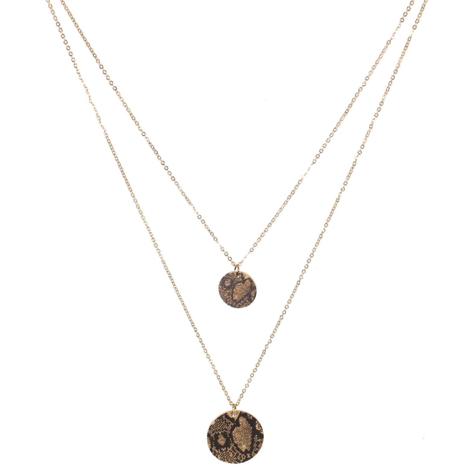 Collier double rangs composé d'un collier de 40 cm de long avec pendentif en acier doré et motif en émail, ainsi qu'un collier de 48 cm de long avec pendentif en acier doré et motif en émail.<br/>Fermoir mousqueton avec rallonge de 6 cm. Léopard Multirangs Rond  Adolescent Adulte Femme Fille Hiver Indémodable Collier double rangs composé d'un collier de 40 cm de long avec pendentif en acier doré et motif en émail, ainsi qu'un collier de 48 cm de long avec pendentif en acier doré et motif en émail.<br/>Fermoir mousqueton avec rallonge de 6 cm. Léopard Multirangs Rond  Adolescent Adulte Femme Fille Hiver Indémodable