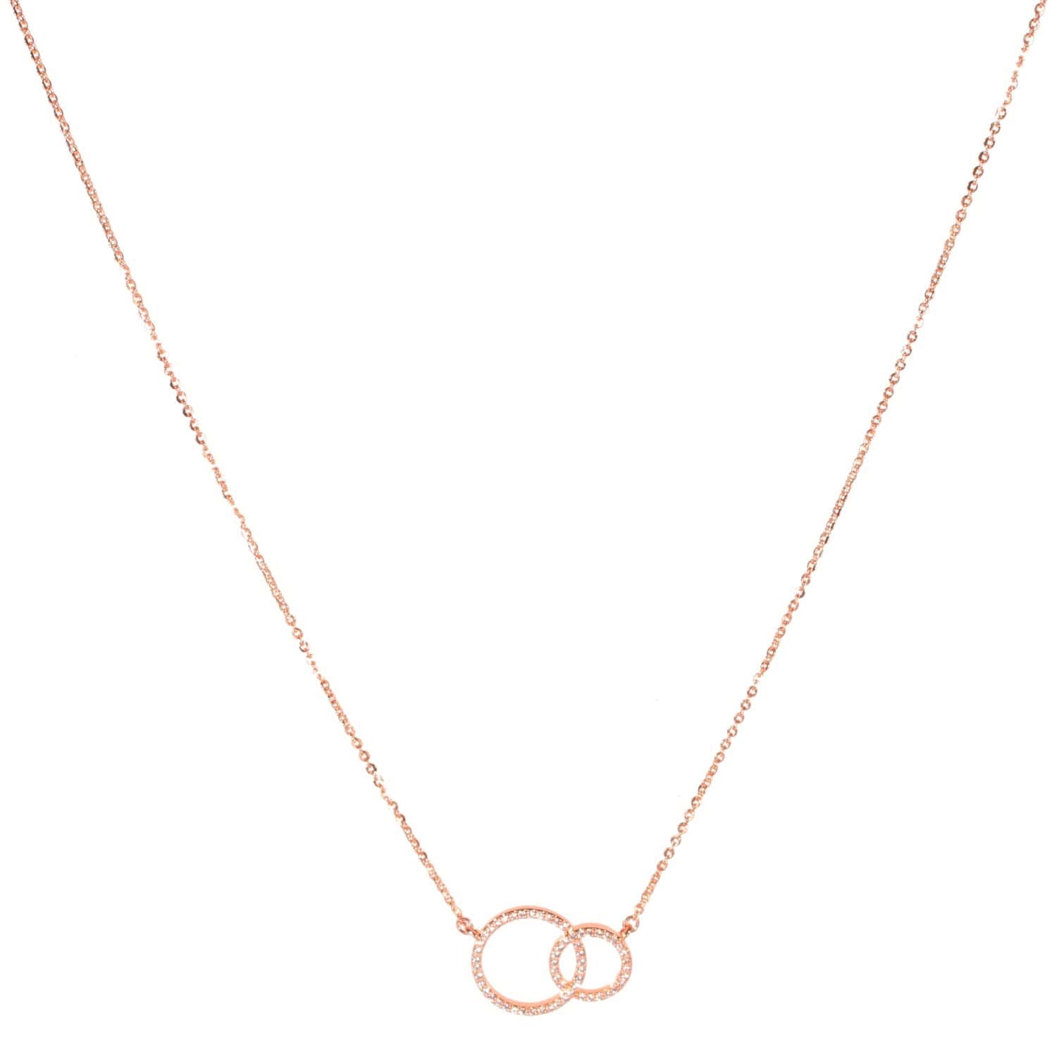 Description Collier fantaisie avec cercles entrelacés en métal rosé de plaquage supérieur et strass en oxydes de zirconium. Fermoir mousqueton avec rallonge de 5 cm. Cliquez sur une matière, un thème, une couleur ou une collection pour voir tous les articles associés.