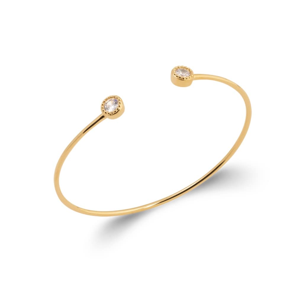 Description Bracelet jonc ouvert en plaqué or 18 carats terminé par deux oxydes de zirconium blancs sertis clos. Largeur 6 mm Diamètre 58 mm [Guide des tailles] Matière(s) Plaqué or , Zirconium . Nos bijoux en plaqué or sont faits sur une base de laiton et recouverts d'or 18 carats à 3 microns sans dispersion. Cela signifie que nous garantissons 3 microns d'or sur n'importe quelle partie du bijou. Sur la plupart de nos bijoux empierrés, nous montons à 5 microns d'or 18 carats. Pour finir, nous faisons également une finition avec de l'or 24 carats afin de donner un plus bel éclat à nos bijoux. Fermoir Autre Couleur(s) dominante(s) Doré Public Adolescent , Adulte . Genre Femme , Fille . Saison Indémodable . Cliquez sur une matière, un thème, une couleur ou une collection pour voir tous les articles associés.