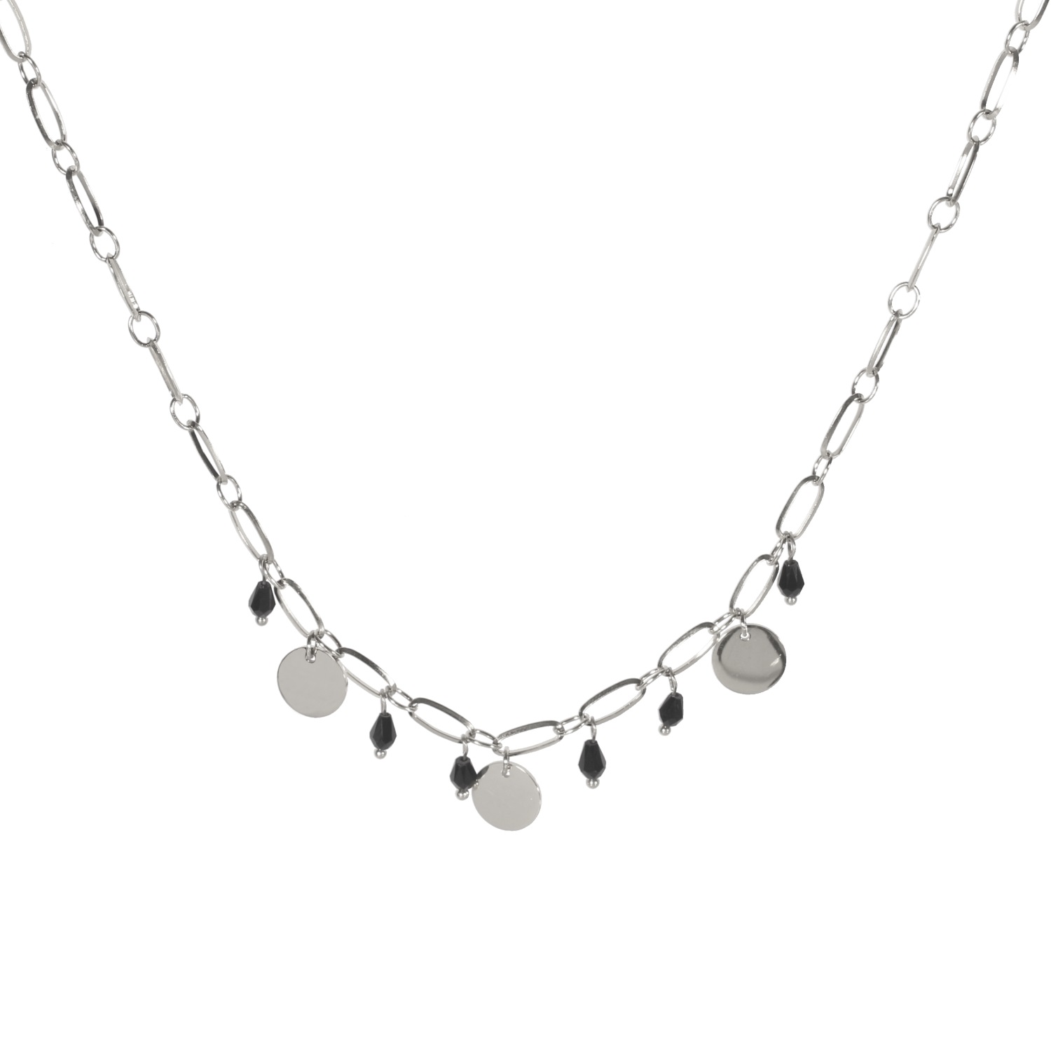 Description Collier composé de pendants pastilles lisse en acier argenté et perles en forme de goutte de couleur noire. Fermoir mousqueton avec 5 cm de rallonge pour l'adapter à votre envie. Longueur 38+5 cm [Guide des tailles] Largeur 10 mm Matière(s) Acier , Rocaille . L'acier utilisé dans la bijouterie existe sous plusieurs qualités. Nous utilisons principalement la qualité 316L, qualité qui est utilisée en chirurgie. Cet acier est donc inoxydable et reste très résistant. Fermoir Mousqueton Couleur(s) dominante(s) Argenté , Noir Public Adolescent , Adulte . Genre Femme , Fille . Saison Indémodable . Cliquez sur une matière, un thème, une couleur ou une collection pour voir tous les articles associés.