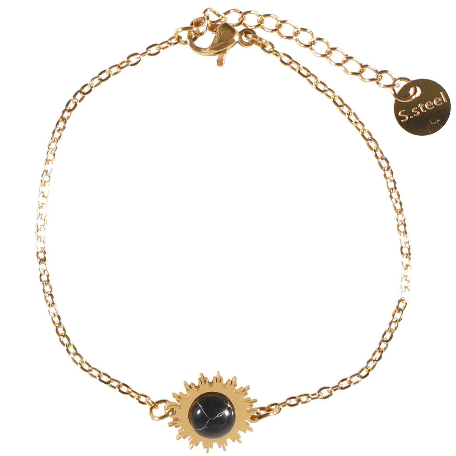Description Bracelet composé d'une chaîne fine et d'un soleil en acier doré surmontée d'une pierre de couleur noire. Fermoir mousqueton avec rallonge de 2.5 cm. Longueur 15.5+2.5 cm [Guide des tailles] Largeur 12 mm Matière(s) Acier , Rocaille . L'acier utilisé dans la bijouterie existe sous plusieurs qualités. Nous utilisons principalement la qualité 316L, qualité qui est utilisée en chirurgie. Cet acier est donc inoxydable et reste très résistant. Fermoir Mousqueton Couleur(s) dominante(s) Doré , Noir Public Adolescent , Adulte . Genre Femme , Fille . Saison Indémodable . Thème(s) Nature . Cliquez sur une matière, un thème, une couleur ou une collection pour voir tous les articles associés.