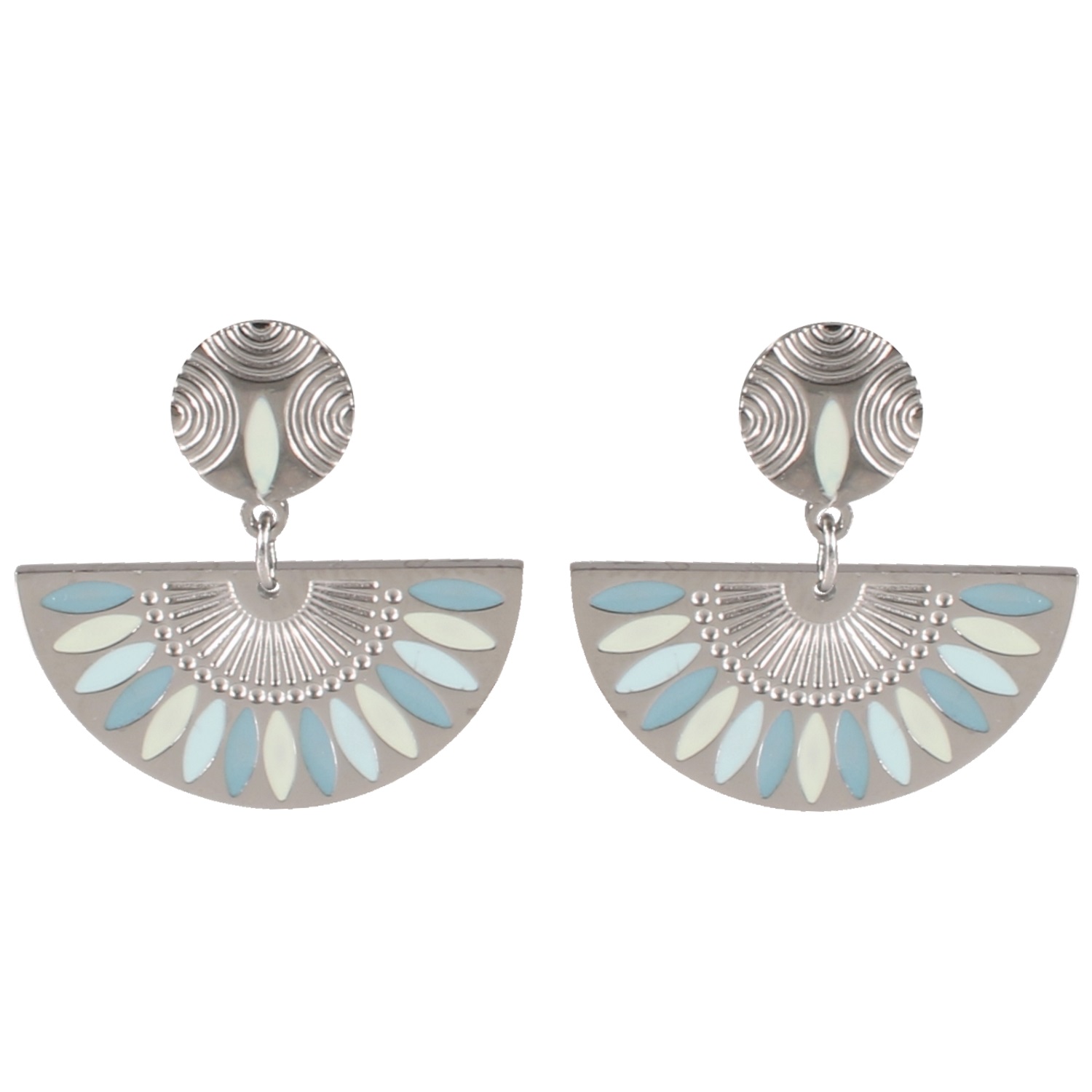 Description Boucles d'oreilles pendantes composées de puce ronde et d'un demi rond pendant au motif d'éventail en acier argenté et émail de couleur. Largeur 22 mm Hauteur 22 mm Matière(s) Acier , Email . L'acier utilisé dans la bijouterie existe sous plusieurs qualités. Nous utilisons principalement la qualité 316L, qualité qui est utilisée en chirurgie. Cet acier est donc inoxydable et reste très résistant. Fermoir Tiges poussettes Couleur(s) dominante(s) Argenté , Bleu Public Adolescent , Adulte . Genre Femme , Fille . Saison Eté , Printemps . Cliquez sur une matière, un thème, une couleur ou une collection pour voir tous les articles associés.