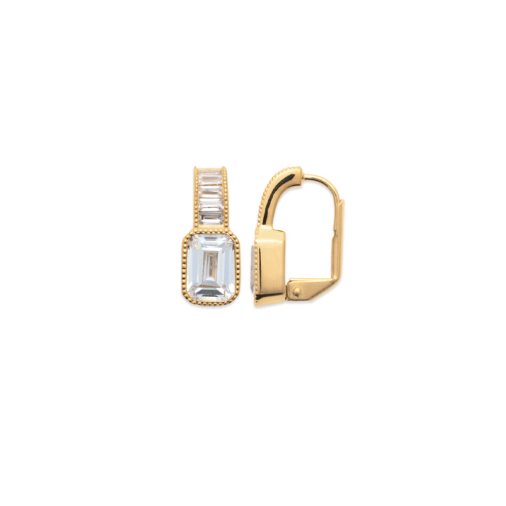 Description Boucles d'oreilles dormeuses pendantes en plaqué or surmontées d'oxydes de zirconium blancs sertis clos. Largeur 6 mm Hauteur 16 mm Matière(s) Plaqué or , Zirconium . Nos bijoux en plaqué or sont faits sur une base de laiton et recouverts d'or 18 carats à 3 microns sans dispersion. Cela signifie que nous garantissons 3 microns d'or sur n'importe quelle partie du bijou. Sur la plupart de nos bijoux empierrés, nous montons à 5 microns d'or 18 carats. Pour finir, nous faisons également une finition avec de l'or 24 carats afin de donner un plus bel éclat à nos bijoux. Fermoir Dormeuses Couleur(s) dominante(s) Doré Public Adolescent , Adulte . Genre Femme , Fille . Saison Indémodable . Cliquez sur une matière, un thème, une couleur ou une collection pour voir tous les articles associés.
