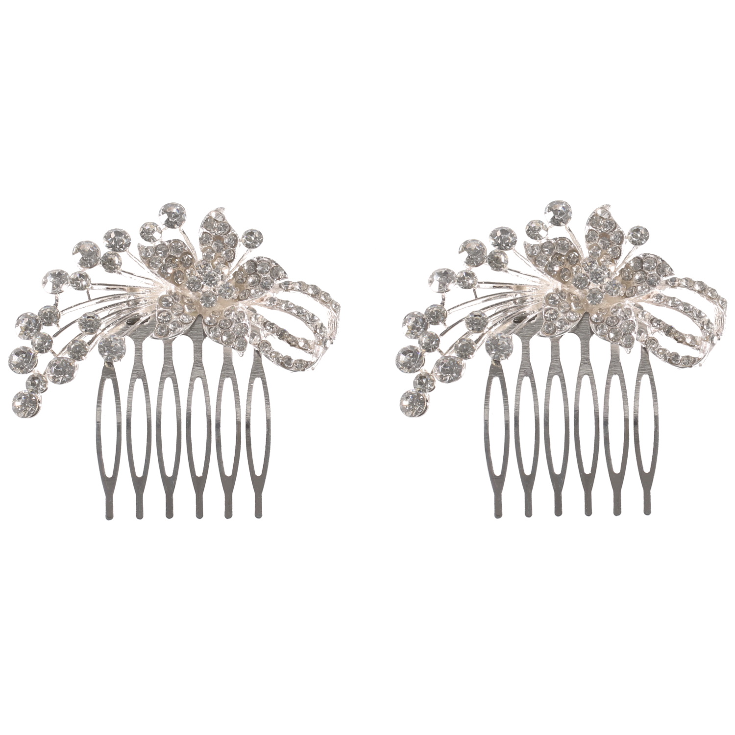 Lot de 2 peignes cheveux en forme de fleurs en métal argenté et strass.