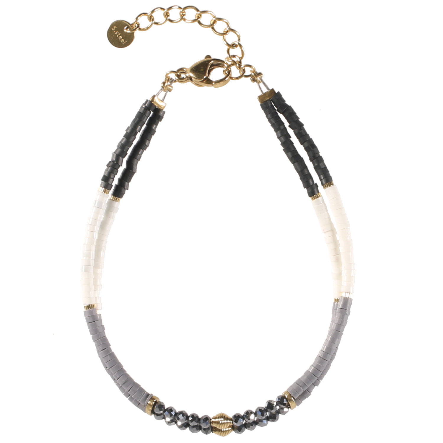 Description Bracelet double rangs composé de perles cylindriques heishi en résine synthétique et caoutchouc de couleur et perles de couleur. Fermoir mousqueton en acier doré avec une rallonge de 3 cm. Cliquez sur une matière, un thème, une couleur ou une collection pour voir tous les articles associés.