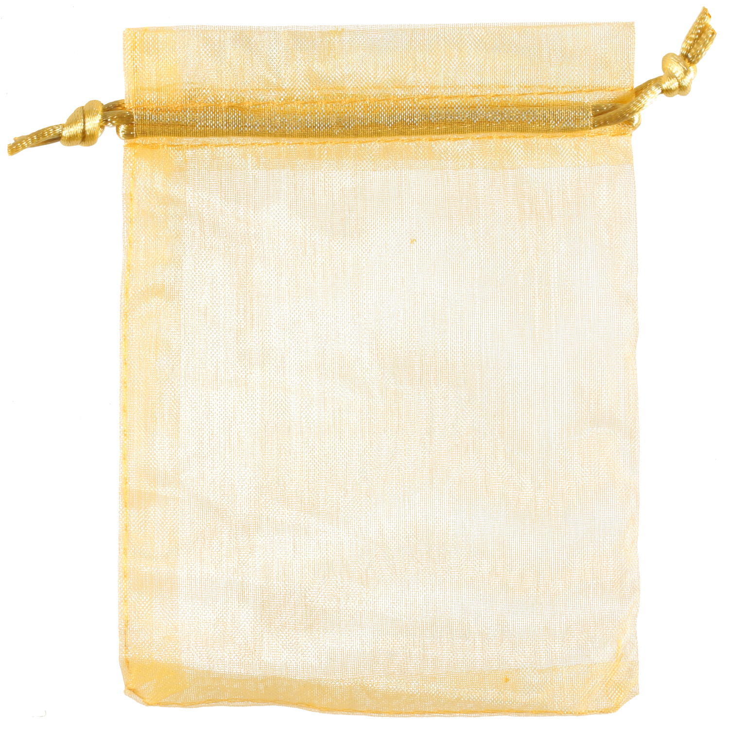 Pochette cadeau en tissu organza de couleur jaune doré.