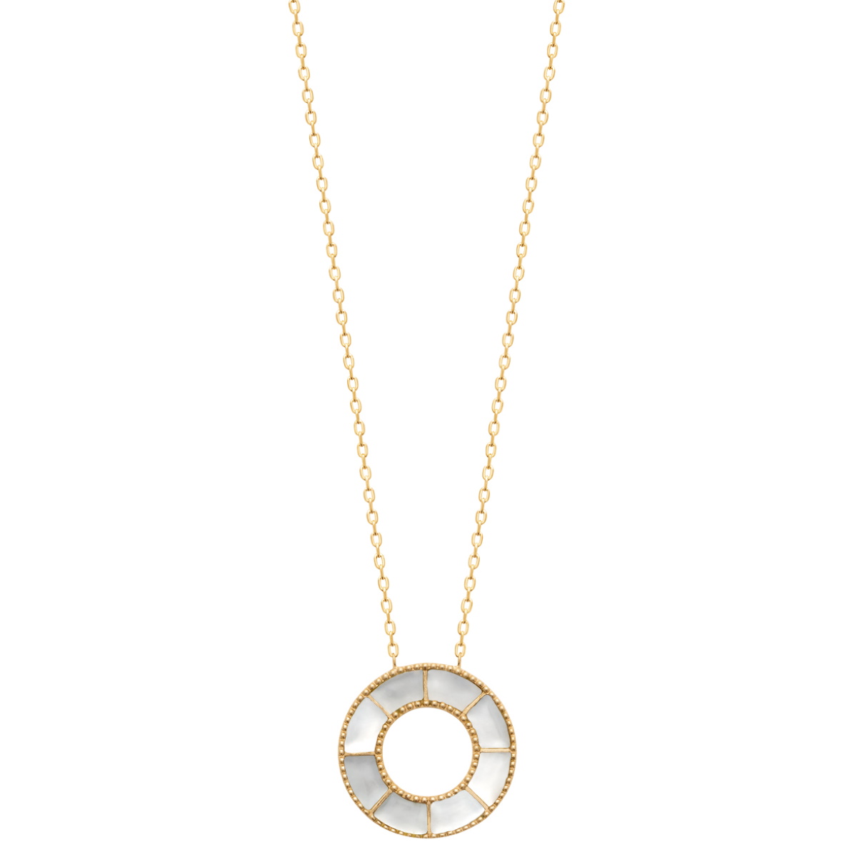 Description Collier composé d'une chaîne en plaqué or jaune 18 carats et d'un pendentif cercle pavé de nacre. Fermoir mousqueton avec anneaux de rappel à 40, 42 et 45 cm. Longueur 40/42/45 cm [Guide des tailles] Matière(s) Nacre , Plaqué or . Nos bijoux en plaqué or sont faits sur une base de laiton et recouverts d'or 18 carats à 3 microns sans dispersion. Cela signifie que nous garantissons 3 microns d'or sur n'importe quelle partie du bijou. Sur la plupart de nos bijoux empierrés, nous montons à 5 microns d'or 18 carats. Pour finir, nous faisons également une finition avec de l'or 24 carats afin de donner un plus bel éclat à nos bijoux. Fermoir Mousqueton À noter Pendentif 20 mm de diamètre Couleur(s) dominante(s) Blanc , Doré Public Adolescent , Adulte . Genre Femme , Fille . Saison Indémodable . Collection Doux coton Cliquez sur une matière, un thème, une couleur ou une collection pour voir tous les articles associés.