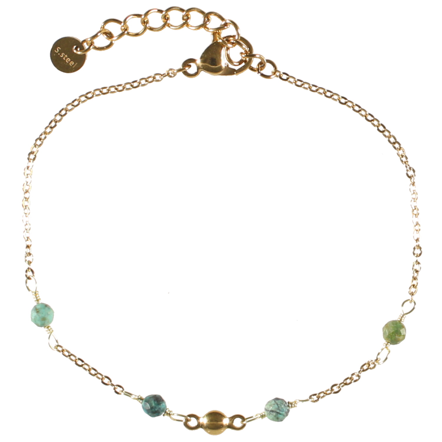 Description Bracelet composé d'une chaîne en acier doré et quatre perles rondes de couleur. Fermoir mousqueton avec une rallonge de 3 cm. Longueur 16+3 cm [Guide des tailles] Largeur 3 mm Matière(s) Acier , Rocaille . L'acier utilisé dans la bijouterie existe sous plusieurs qualités. Nous utilisons principalement la qualité 316L, qualité qui est utilisée en chirurgie. Cet acier est donc inoxydable et reste très résistant. Fermoir Mousqueton Couleur(s) dominante(s) Doré , Vert Public Adolescent , Adulte . Genre Femme , Fille . Saison Indémodable . Cliquez sur une matière, un thème, une couleur ou une collection pour voir tous les articles associés.