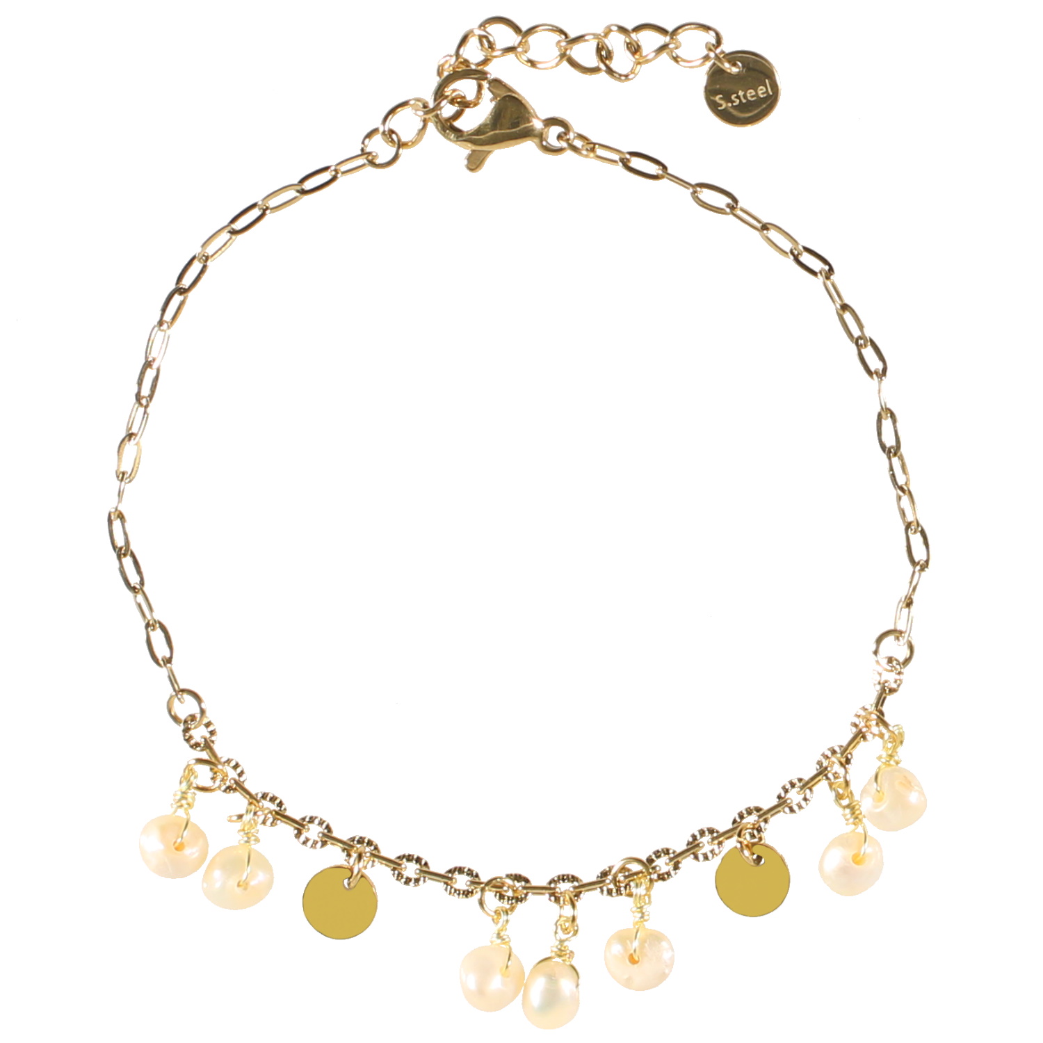Description Bracelet composé d'une chaîne avec pampilles rondes en acier doré et des perles en nacre. Fermoir mousqueton avec 3 cm de rallonge. Longueur 16+3 cm [Guide des tailles] Largeur 10 mm Matière(s) Acier , Nacre . L'acier utilisé dans la bijouterie existe sous plusieurs qualités. Nous utilisons principalement la qualité 316L, qualité qui est utilisée en chirurgie. Cet acier est donc inoxydable et reste très résistant. Fermoir Mousqueton Couleur(s) dominante(s) Blanc , Doré Public Adolescent , Adulte . Genre Femme , Fille . Saison Eté . Collection Doux coton Cliquez sur une matière, un thème, une couleur ou une collection pour voir tous les articles associés.
