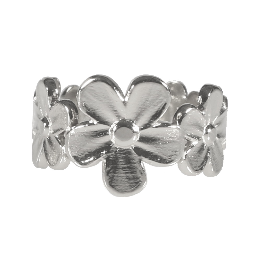 Description Bague au motif de fleurs en acier argenté. Taille ajustable. Largeur 12 mm Matière(s) Acier . L'acier utilisé dans la bijouterie existe sous plusieurs qualités. Nous utilisons principalement la qualité 316L, qualité qui est utilisée en chirurgie. Cet acier est donc inoxydable et reste très résistant. Fermoir Aucun Couleur(s) dominante(s) Argenté Public Adolescent , Adulte . Genre Femme , Fille . Saison Indémodable . Thème(s) Fleurs . Cliquez sur une matière, un thème, une couleur ou une collection pour voir tous les articles associés.